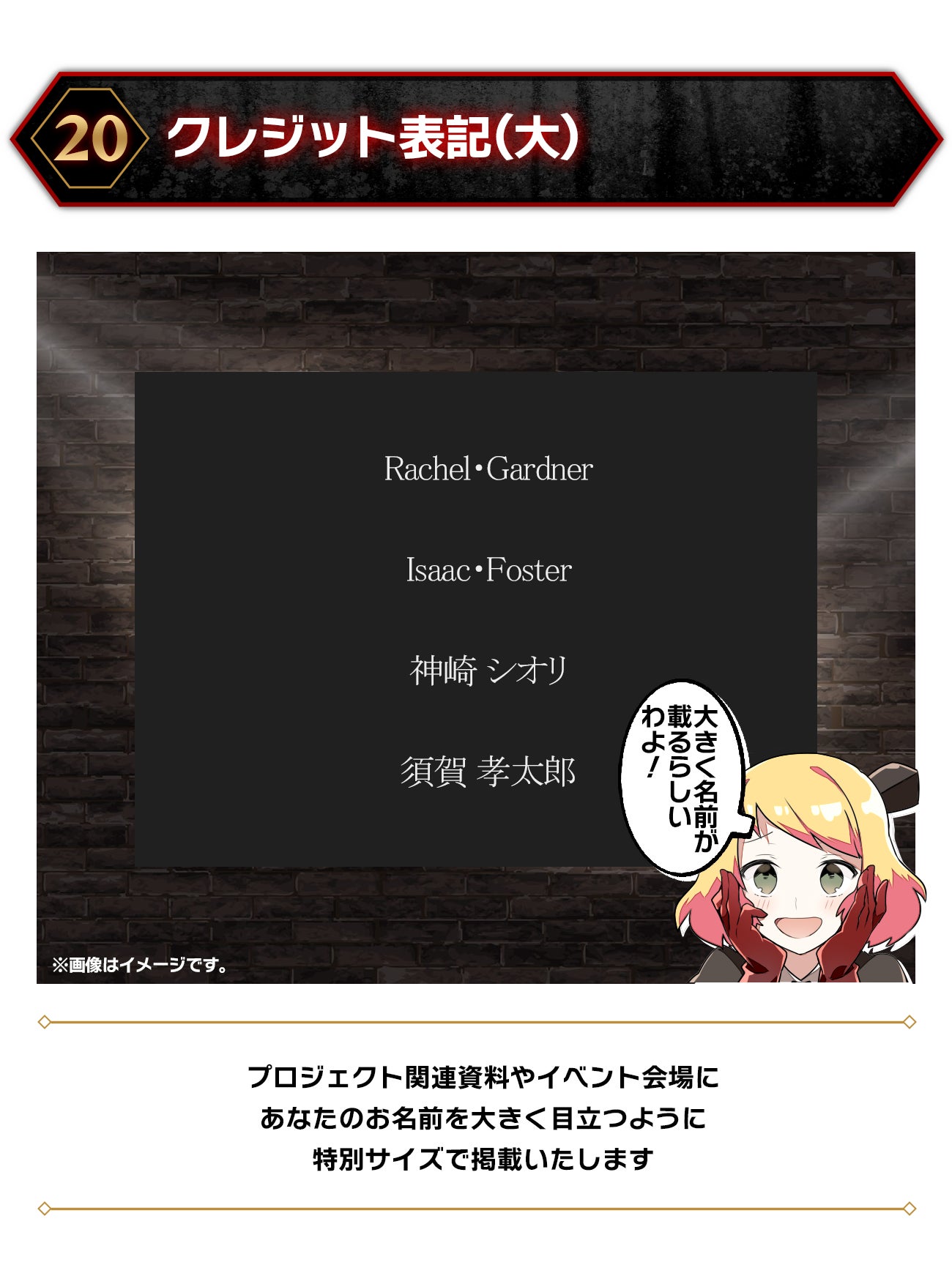 今回の展示会が成立したあかつきには、間違いなく本展示成立に貢献した「最高位」の公式サポーターであることが公式認定されます。公式に確かに名が刻まれる、とても貴重な機会です。