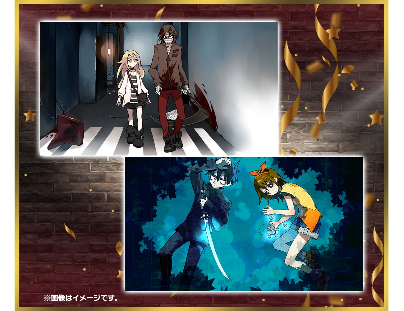 (注意:上に表示しているのは各作品の公式サイト内で表示している既存絵。これらとは違う全くの新規絵が届きます)