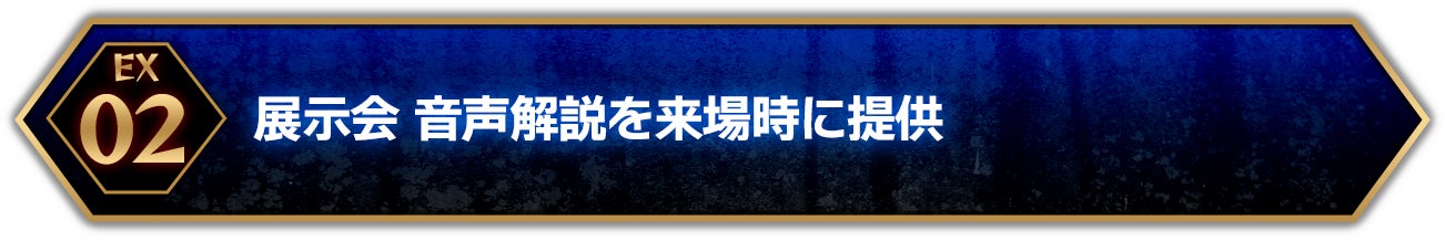 この音声解説は会場では有料提供になっておりますが、このリターン品をゲットしている来場者の方には、通常は展示会にて個別にご購入いただく音声解説を、追加のご負担なくご利用いただけます。(証明する方法は後日、支援者のかたにご案内いたします)。