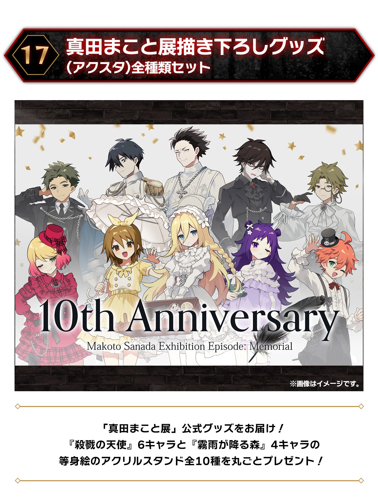 私たちは現在そんな本作の10周年を記念して、東京の「有楽町マルイ」で大型のグッズフェア「『殺戮の天使』10周年記念 真田まこと展 -Episode. Memorial- 」(以下、「真田まこと展」) 開催を今年8月前半に企画しています。