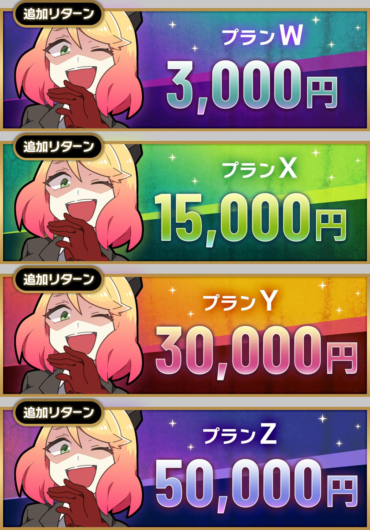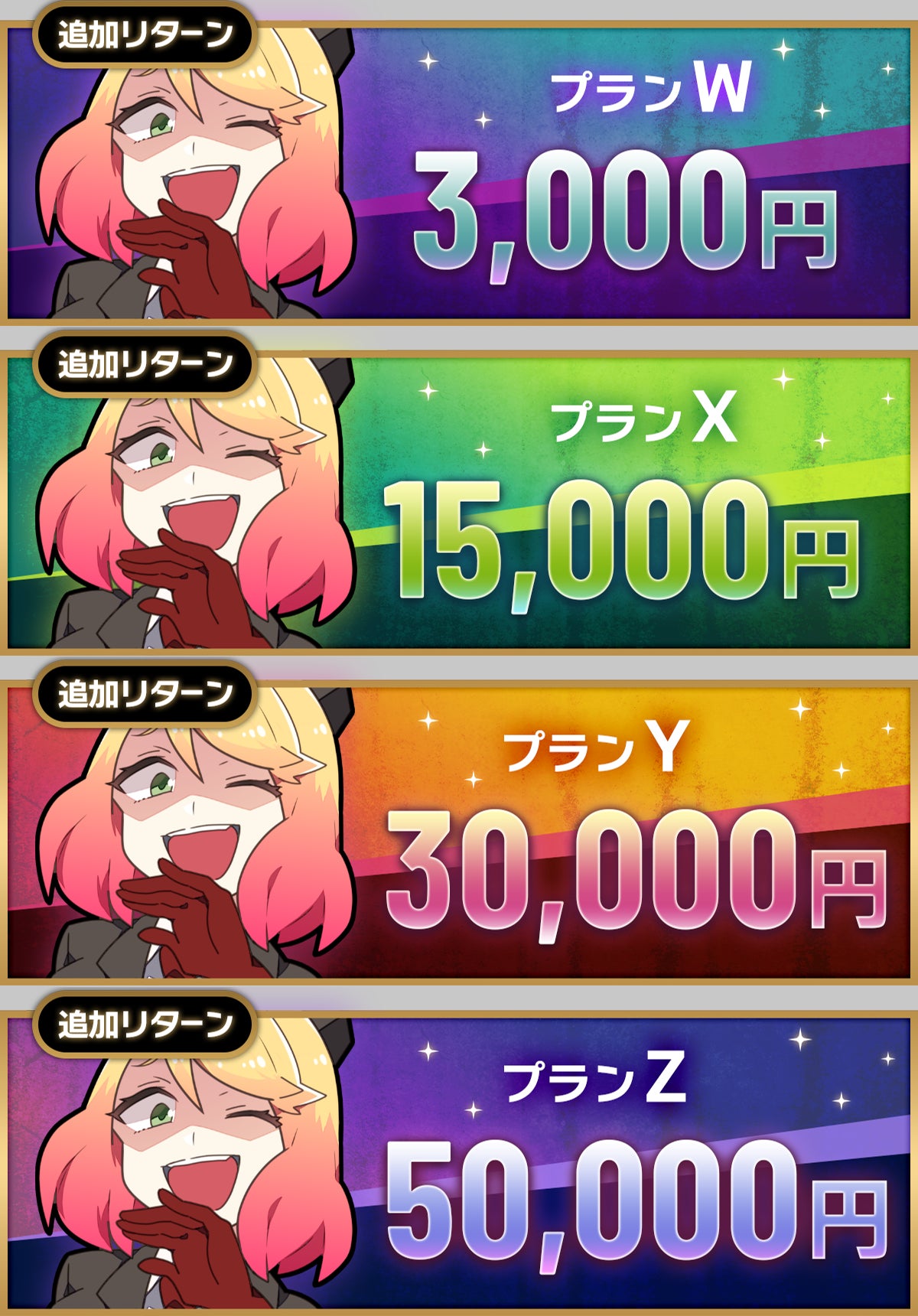 今回、プランW、プランX、プランY、プランZの4種を追加予定です。そのうち、数量限定のプランZに含まれる内容について、先んじてお知らせいたします。