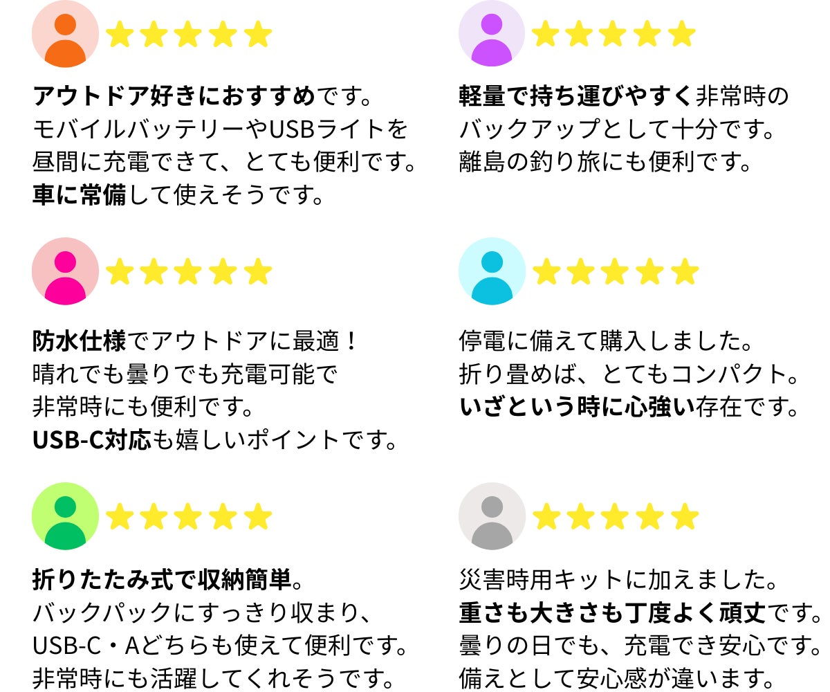 車中泊や自然災害の備えとしても活躍します。