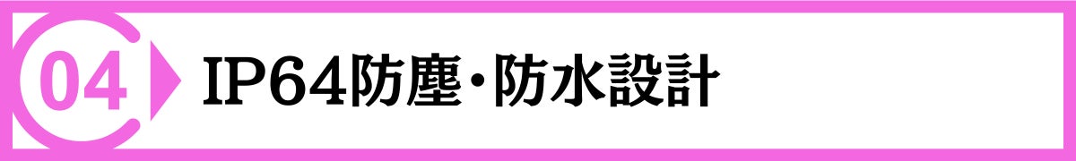 IP64の防塵・防水設計により、
