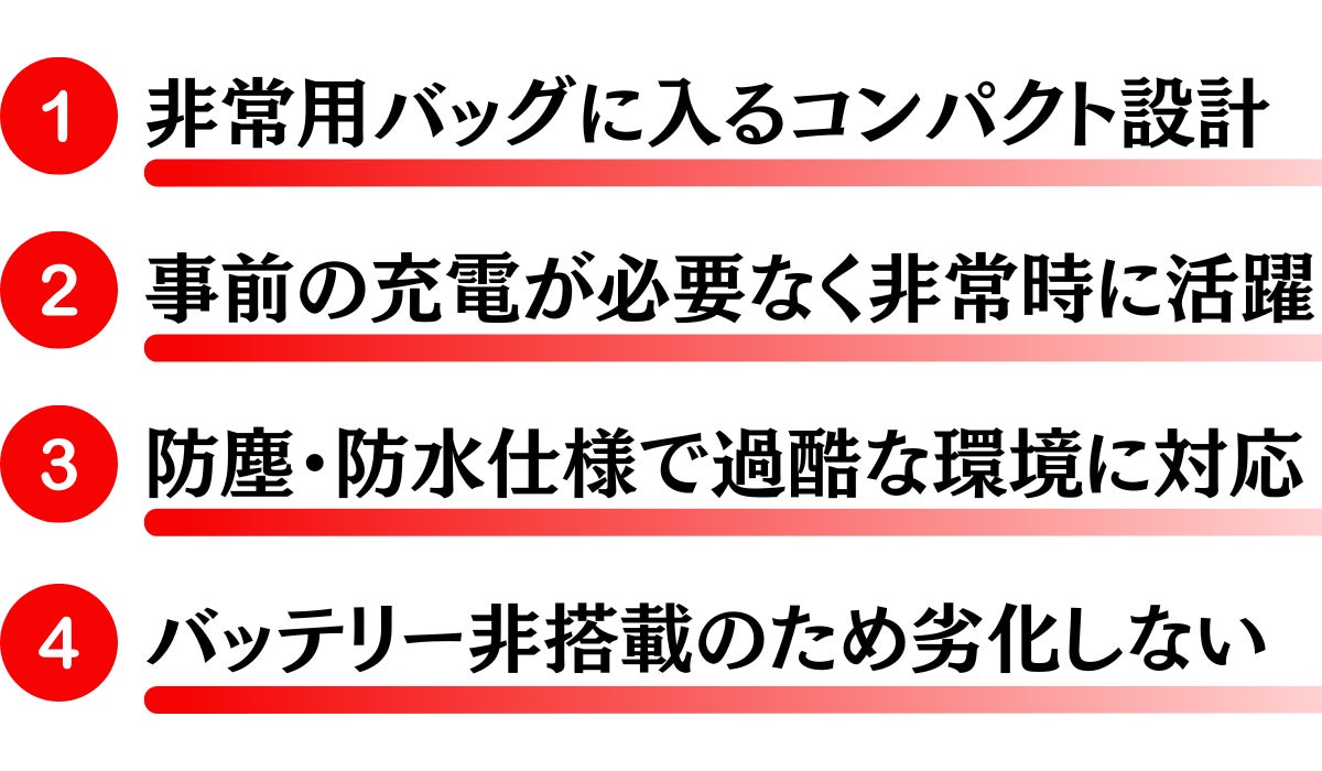 停電や避難の備えに。