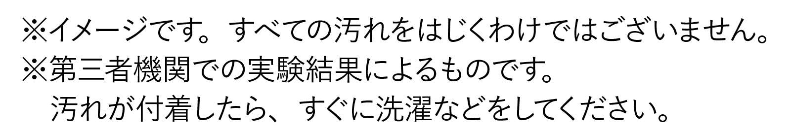 ※すべての汚れをはじくわけではございません。※第三者機関での実験結果によるものです。汚れが付着したら、すぐに洗濯などしてください。