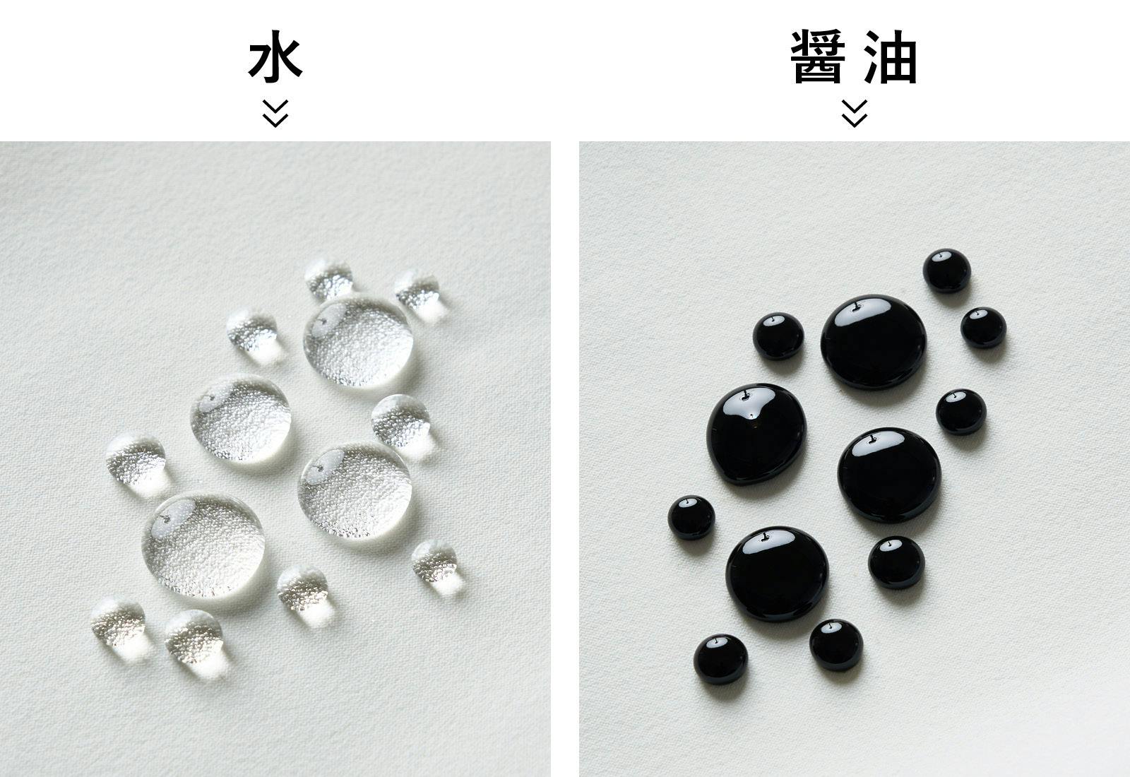 独自の「ウルトラバリア加工」で、水でも醤油でも、ご覧の通り。