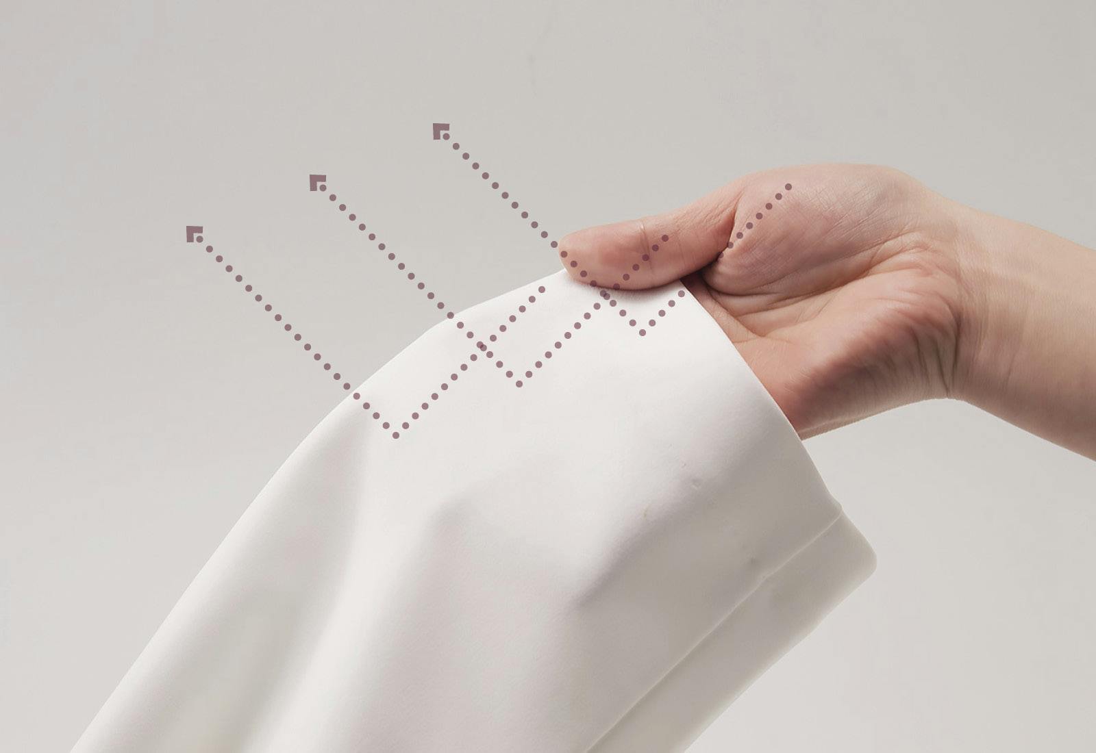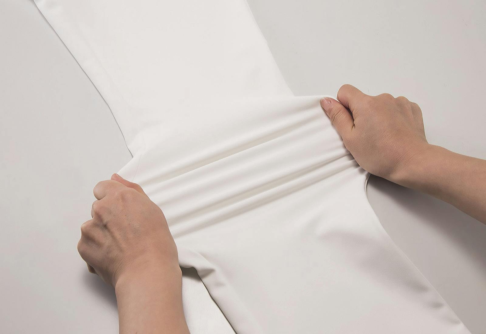 光の乱反射を利用して、薄くても中の色をしっかり透けにくくする、特殊繊維生地を採用。インナーが透けてしまうのをしっかりガードします。