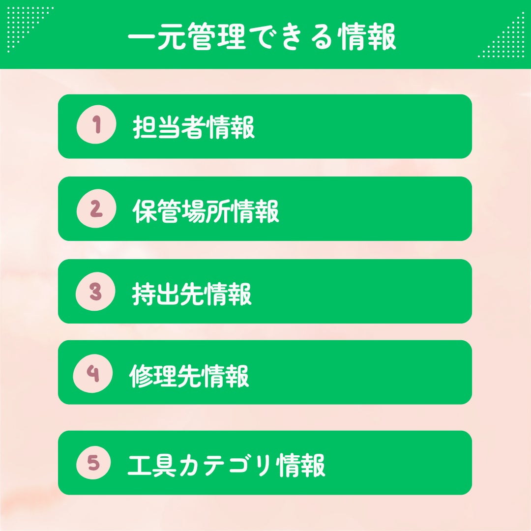 ・工具の所在と状態を明確化し、紛失リスクを低減