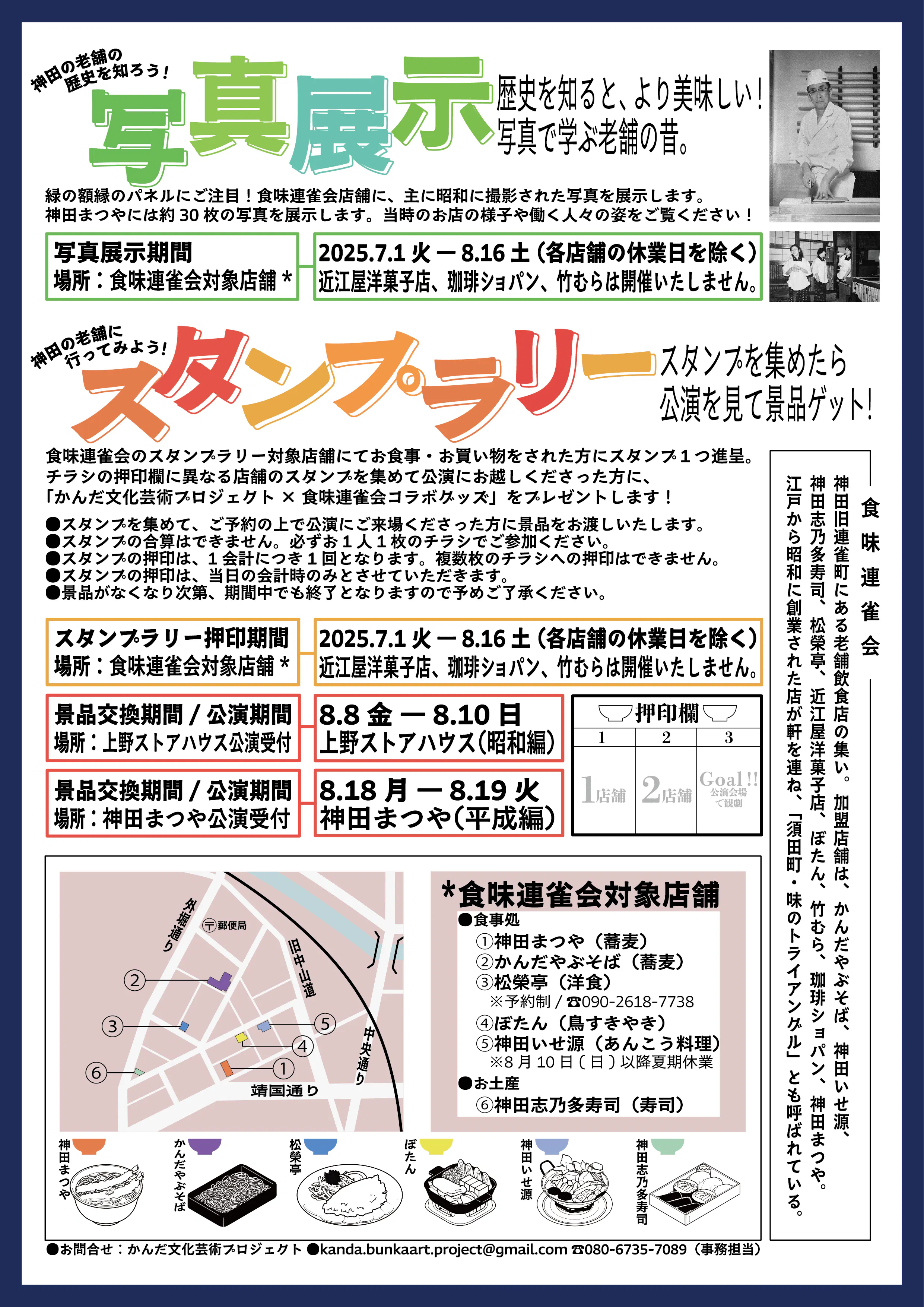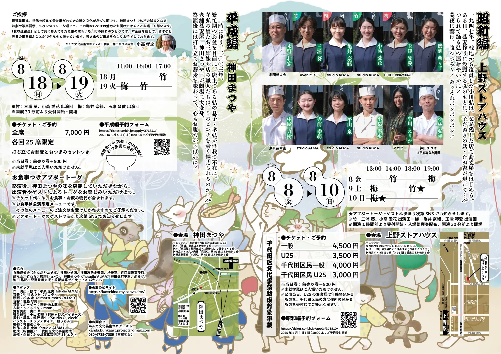 私たちの他にも、神田の老舗飲食店の集い「食味連雀会」が協力し、公演を通じて神田旧連雀町の老舗飲食店の味と魅力を発信することを目指しています!