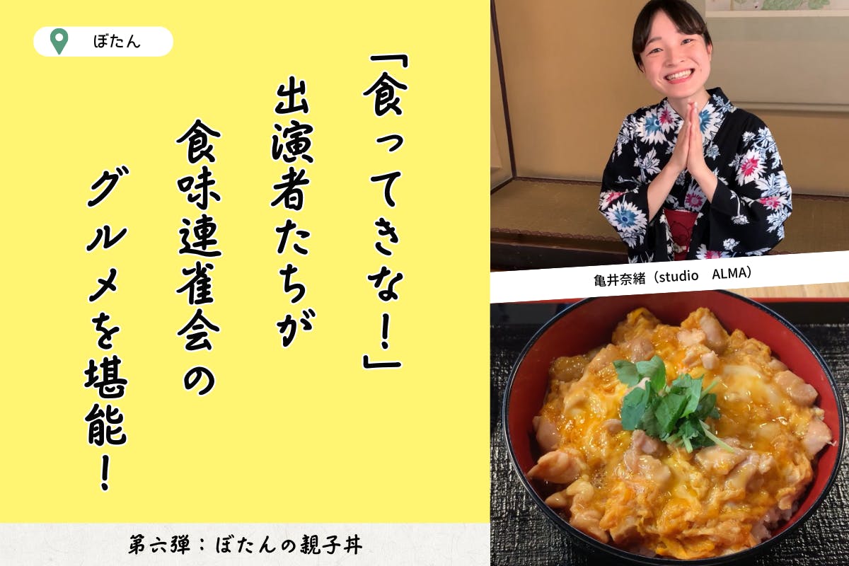 2025/05/19 20:00みなさん、こんばんは!スタジオアルマです!クラウドファンディング終了まであと13日!昨晩新たにご支援してくださった方がいらっしゃり、現在目標金額の92%を達成しています!あたたかなご支援誠にありがとうございます。目標達成まで、ドキドキの毎日です。さて今日は、「食ってきな! -神田食味連雀奇譚・蕎麦の巻-」出演者による食リポ動画の第六弾をお届けします。食リポ動画は今回が最終回の予定。これまで6つの老舗をご紹介してきましたが、行ってみたいお店は見つかりましたでしょうか!?リターンのお食事券や老舗の商品がお家に届くプランで、是非お試しください!さて、最終回にご紹介するのは、明治30年頃創業の老舗鳥すきやき屋「ぼたん」!出演者の亀井奈緒(studio ALMA)が、ランチメニューの「親子丼」をリポートします。▶▶▶食リポ動画はこちらから!ぼたんの味をお楽しみいただけるリターンはこちら!≪食味連雀会店舗で使えるお食事券(6,000円分 or 11,000円分)と【昭和編】公演チケットのセット≫まるで旅館のような上品な店内で、ゆったりとした癒し時間をお過ごしください。自分へのご褒美におすすめですよ♪応援よろしくお願いいたします! もっと見る