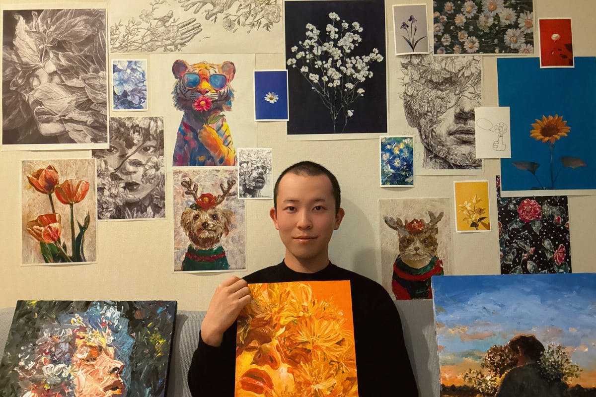 旗揚げ公演『THE TRICKSTER〜甦るギャラリー〜』では、舞台とアートが響き合う特別な試みとして、コラボレーションアーティスト・はなりーまん氏との共演が実現しました。SNSで初めて彼の作品を拝見した瞬間、その温かくも力強い世界観に深く心を打たれました。「彼の作品なら、この舞台の世界観をさらに深く広げてくれる——」そう確信して、私たちからコラボレーションをお願いしました。舞台が描く“再生”の物語と、はなりーまん氏が描く“癒しと強さの象徴である花々”は、まさに本公演のテーマと美しく響き合っています。開演前・終演後には、会場内で彼の絵画をご鑑賞いただけます。空間そのものがギャラリーとなるひととき——アートと舞台が織りなす世界を、ぜひ五感でご体感ください。〇「はなりーまん」プロフィールガンになって花を描き始めたサラリーマン。2024年夏、悪性リンパ腫ステージIIIが発覚。抗がん剤治療を経て2025年春に寛解。苦境と闘う勇気や癒しをテーマに作品制作を行う。〇来場者へのメッセージpirori-noさんとSatomiさんにお声がけいただいてはじめてのミーティング、お二人の熱量に圧倒され、是非一緒に素敵な舞台をつくりたいと即参画を決めました。世界がもつ想いとそれに寄り添う花を表現した5つの作品が、本舞台と誰かの人生を彩れますように。