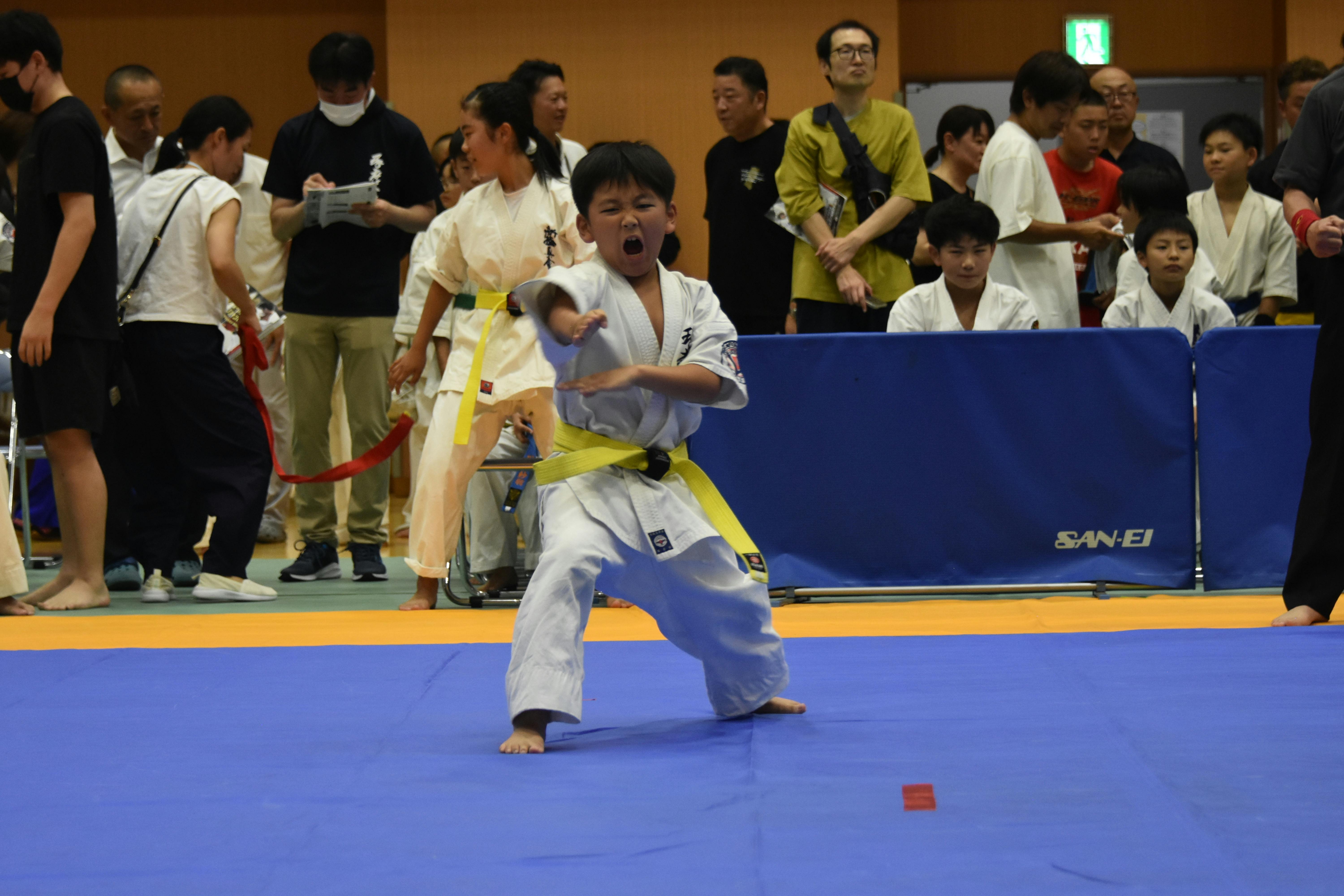ルールは直接打撃制空手で幼児から大人までの選手が出場し階級、ウエイトに分かれ同世代のライバルたちとしのぎを削ります