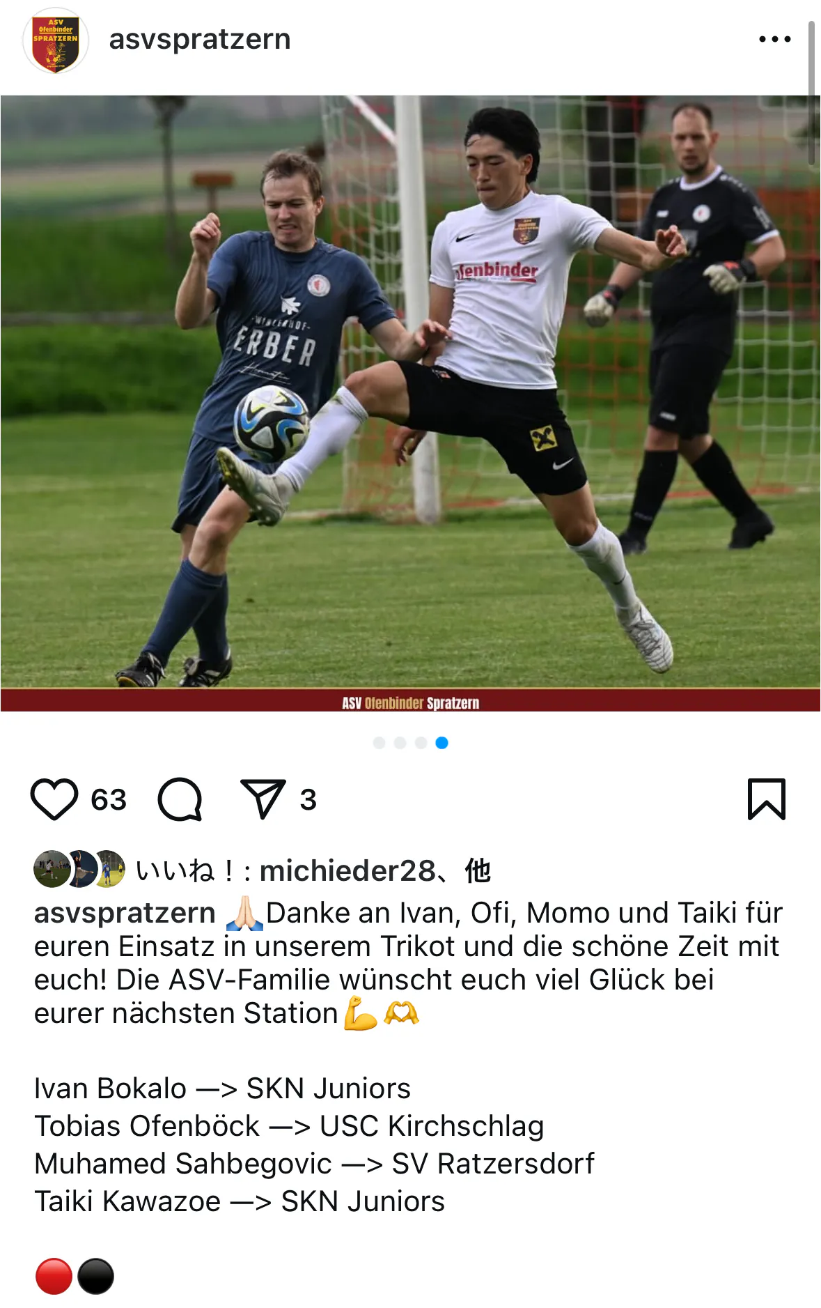 2025/06/23 16:46【報告】2月からASV spratzern(オーストリア6部)に所属していましたが、活躍が評価され、7月からSKN St.polten juniors(オーストリア4部)に移籍することにました。SKN St.polten juniorsは、オーストリア2部にトップチームがあるセカンドチームです。トップチームには、二田理央(現 浦和レッズ)選手も所属したことがあります。このチームで実力が認められれば、すぐにトップチームの方に上がることができる環境です。 もっと見る