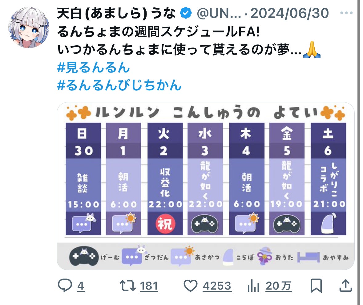 にじさんじ ルンルン様 スケジュール表FA