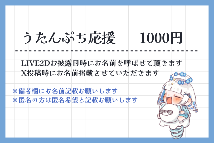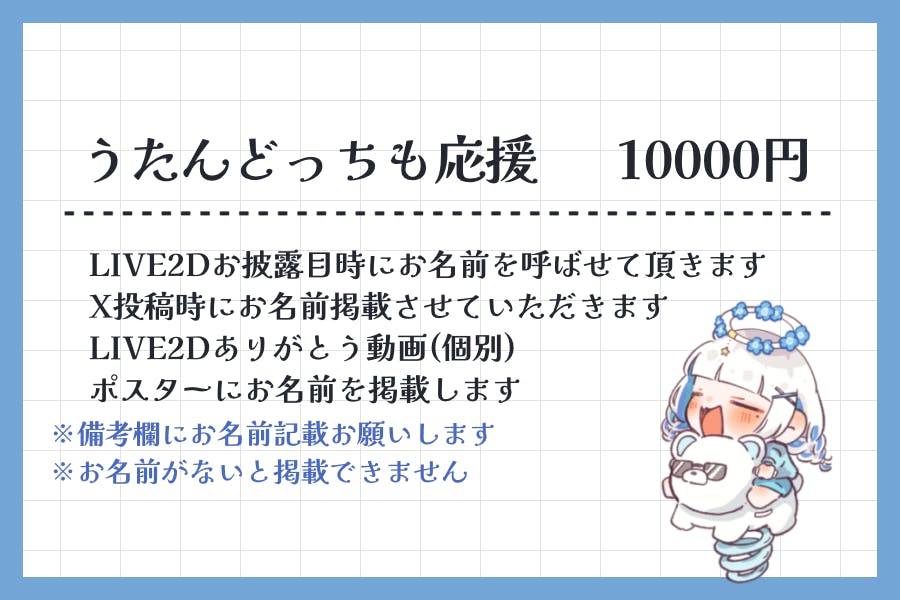 【うたんどっちも応援/10000円】(匿名不可)