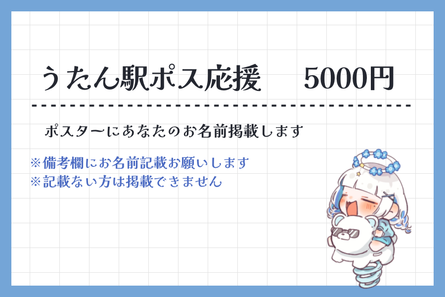 【うたん駅ポス応援/5000円】(匿名不可)