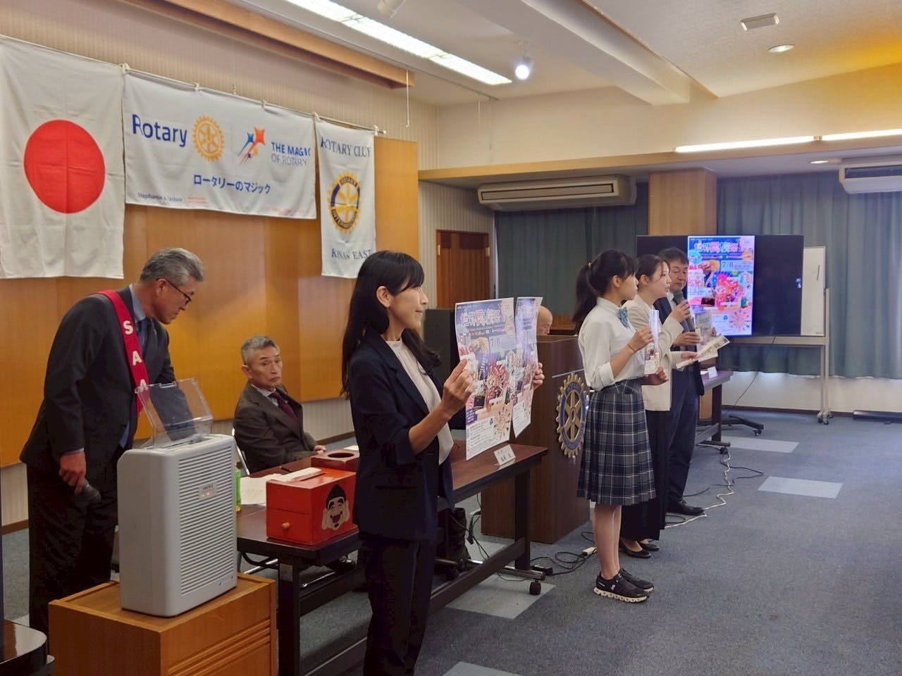 開催まで一ヶ月を切り、完成したリーフレットを持って関係各所へ広報活動をはじめています。東海南ロータリークラブでは、実行委員会とりら創造芸術高等学校の代表生徒が開催へ向けて、応援していただきたいです!と想いを伝えました。
