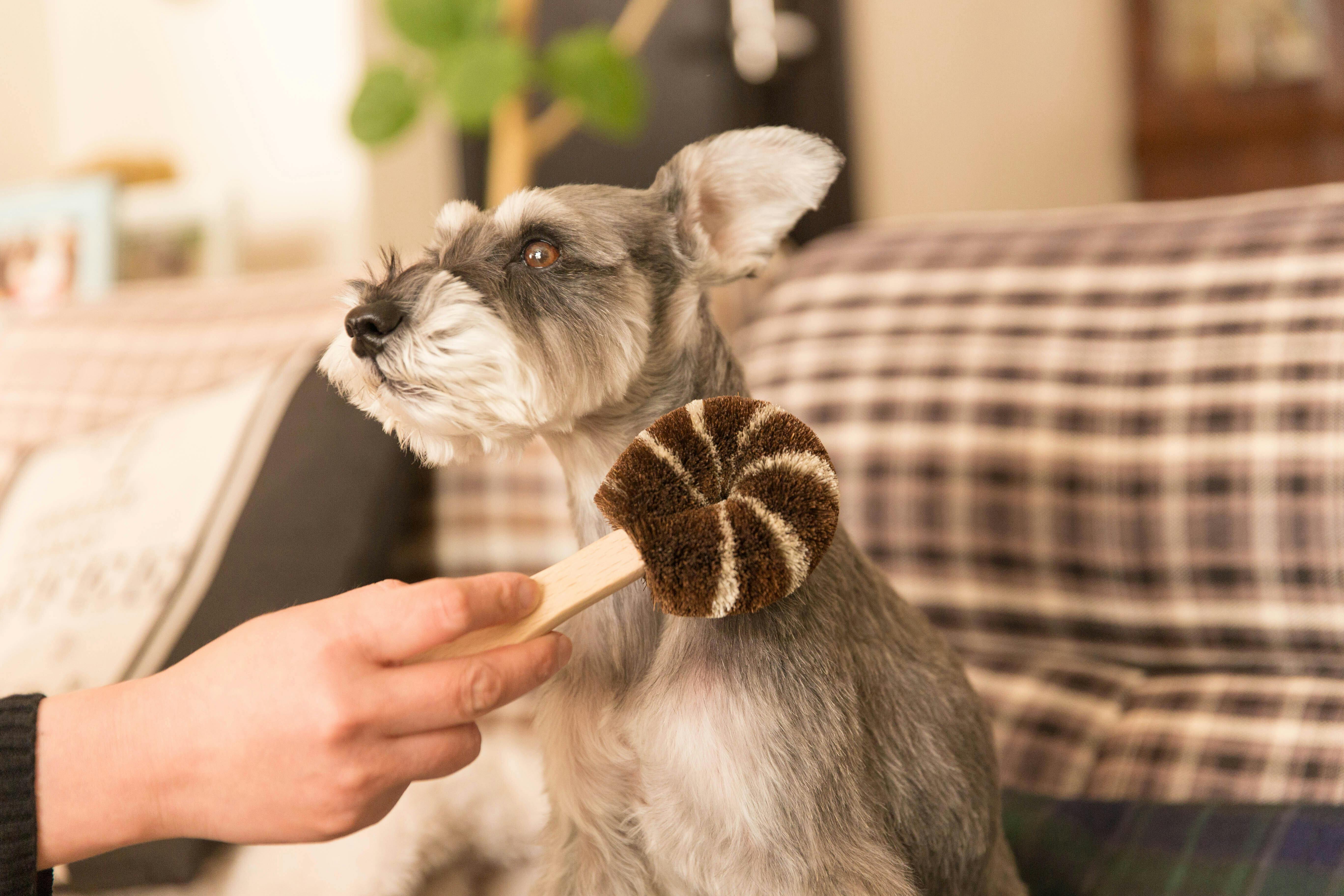 毛並みに沿ってたわしでブラッシングしてください。毛をほぐし整えつつ、表面についた汚れもキレイになります。