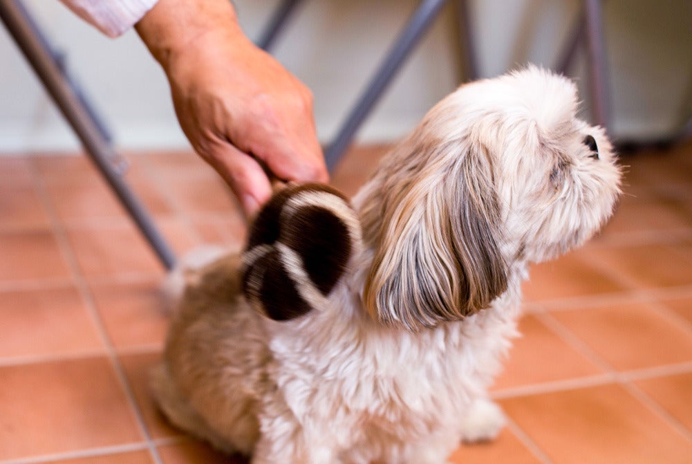 毛をかき分けて地肌になでるようにブラッシングすると喜びます。毛玉やもつれができやすいワンちゃんは毛玉の部分をたわしでやさしく、なでるようにブラッシングしてください。程よく毛玉がとれます。