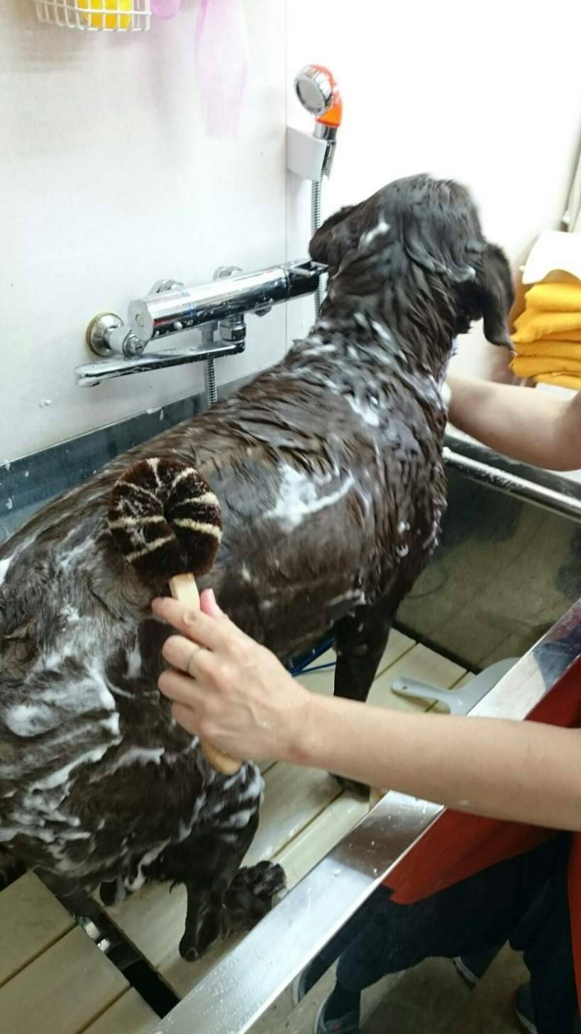当時我が家ではビーグル犬を飼っていて、柔らかなたわしでブラッシングしていました。