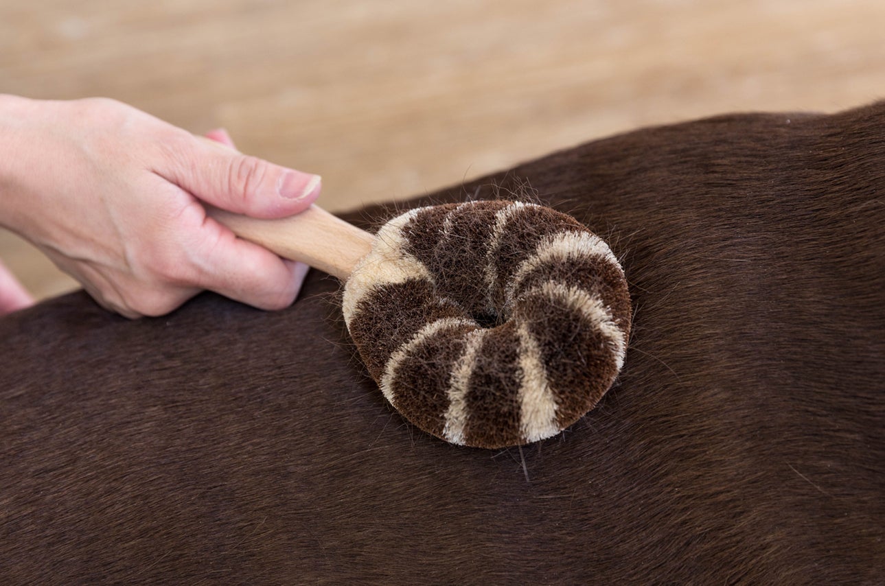 毛並みに沿ってたわしでブラッシングしてください。毛をほぐし整えつつ、表面についた汚れもキレイになります。