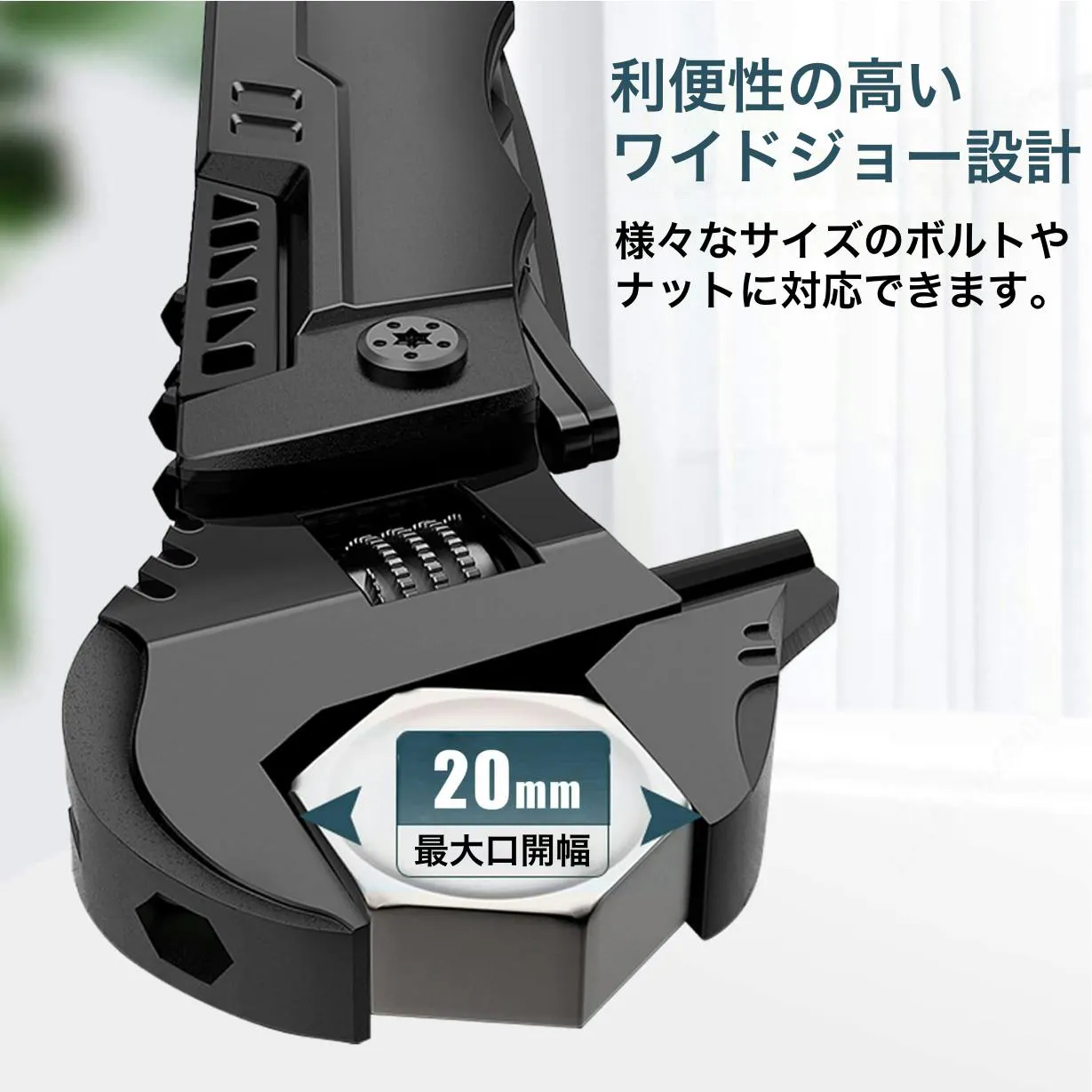 スムーズに回転するウォームで、様々なサイズのボルトやナットもこれひとつで締められます。