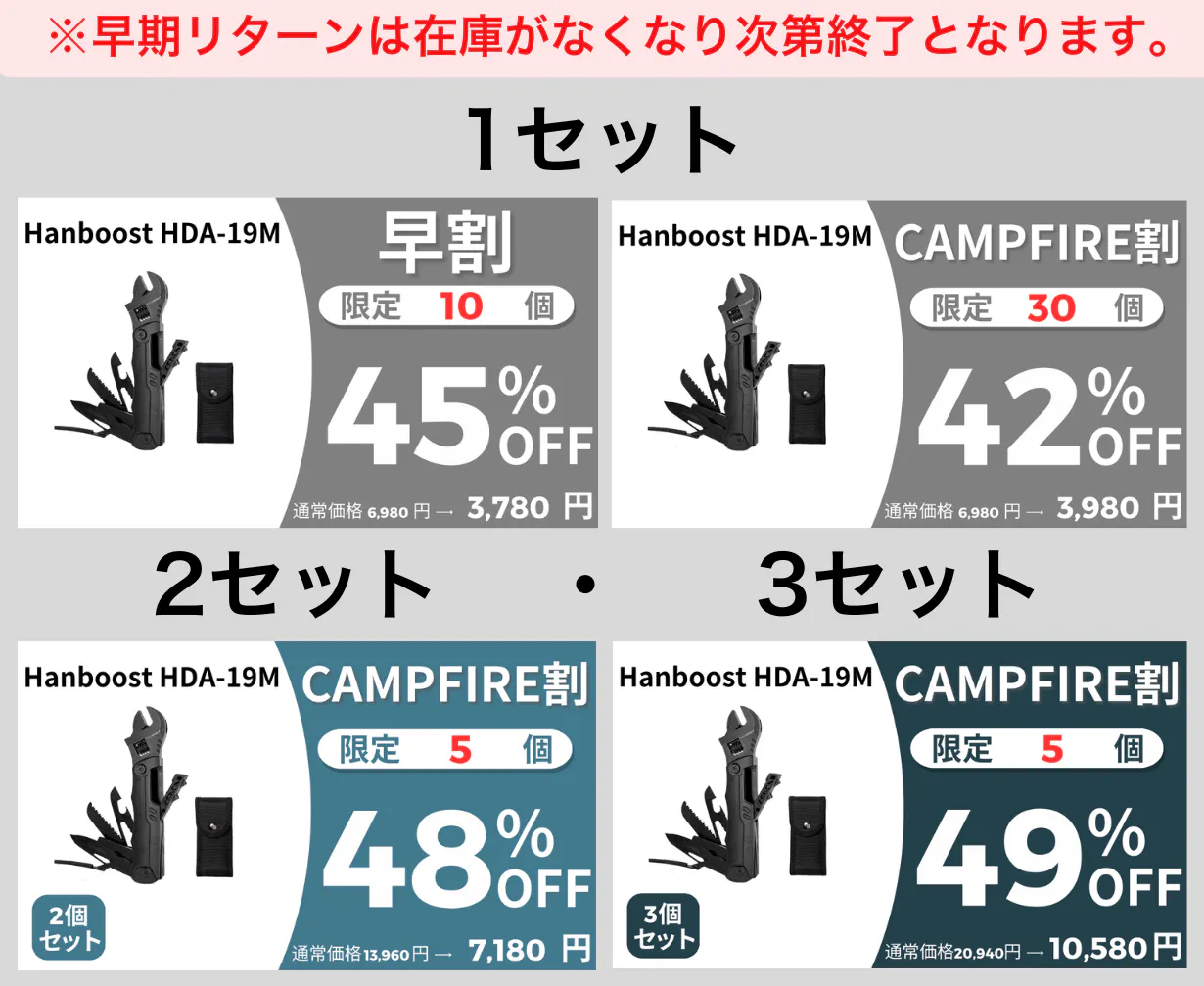 ※早期リターンは在庫がなくなり次第終了となります。