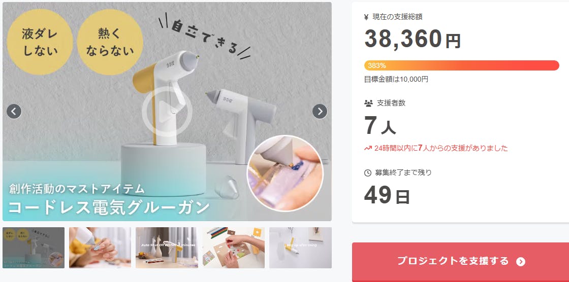 この度は「創作活動のマストアイテム。 高速予熱で45秒で温まるコードレス電気グルーガン」に支援頂き誠にありがとうございます!
