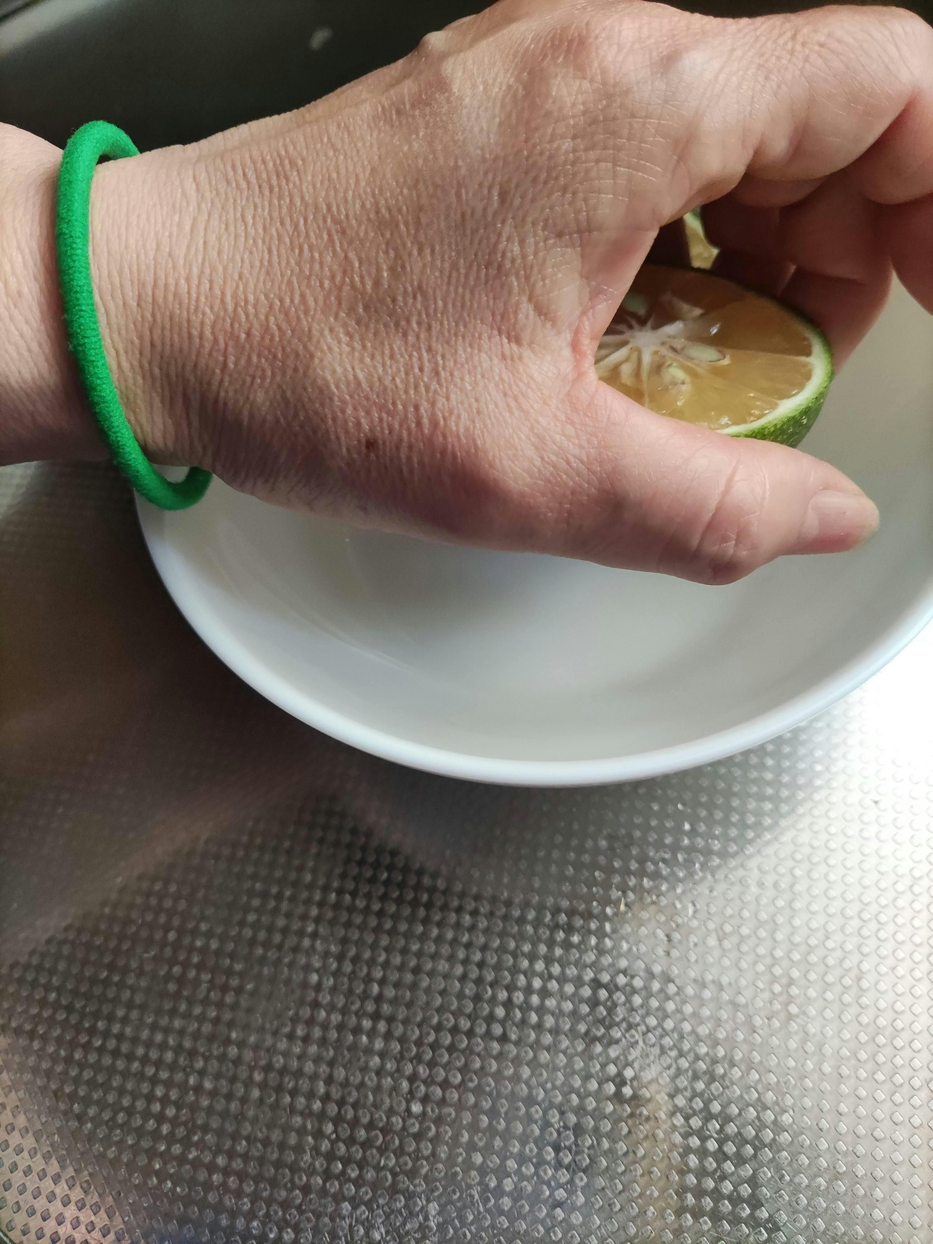 カボスやレモンなどを絞る時には、皮の面を下方向にして絞ってくださいね。