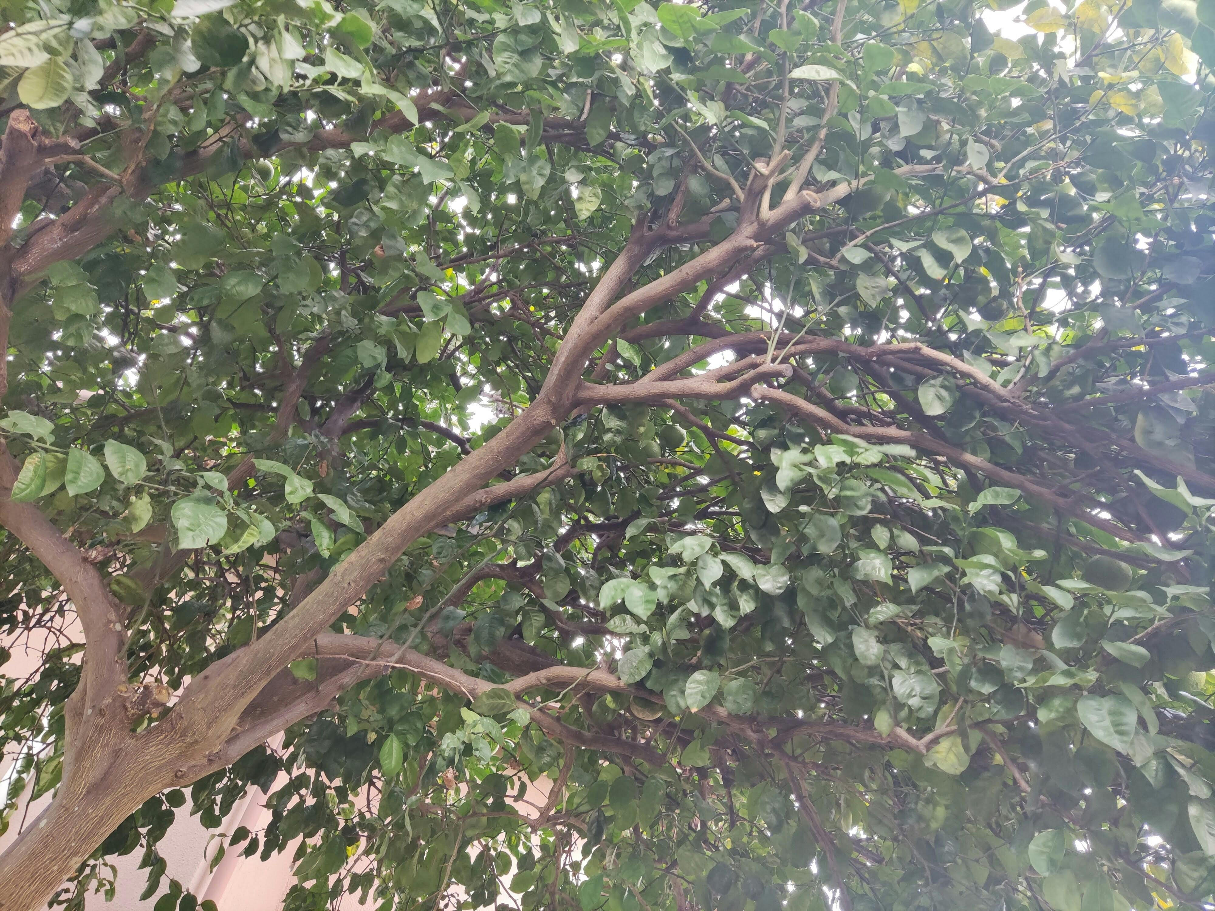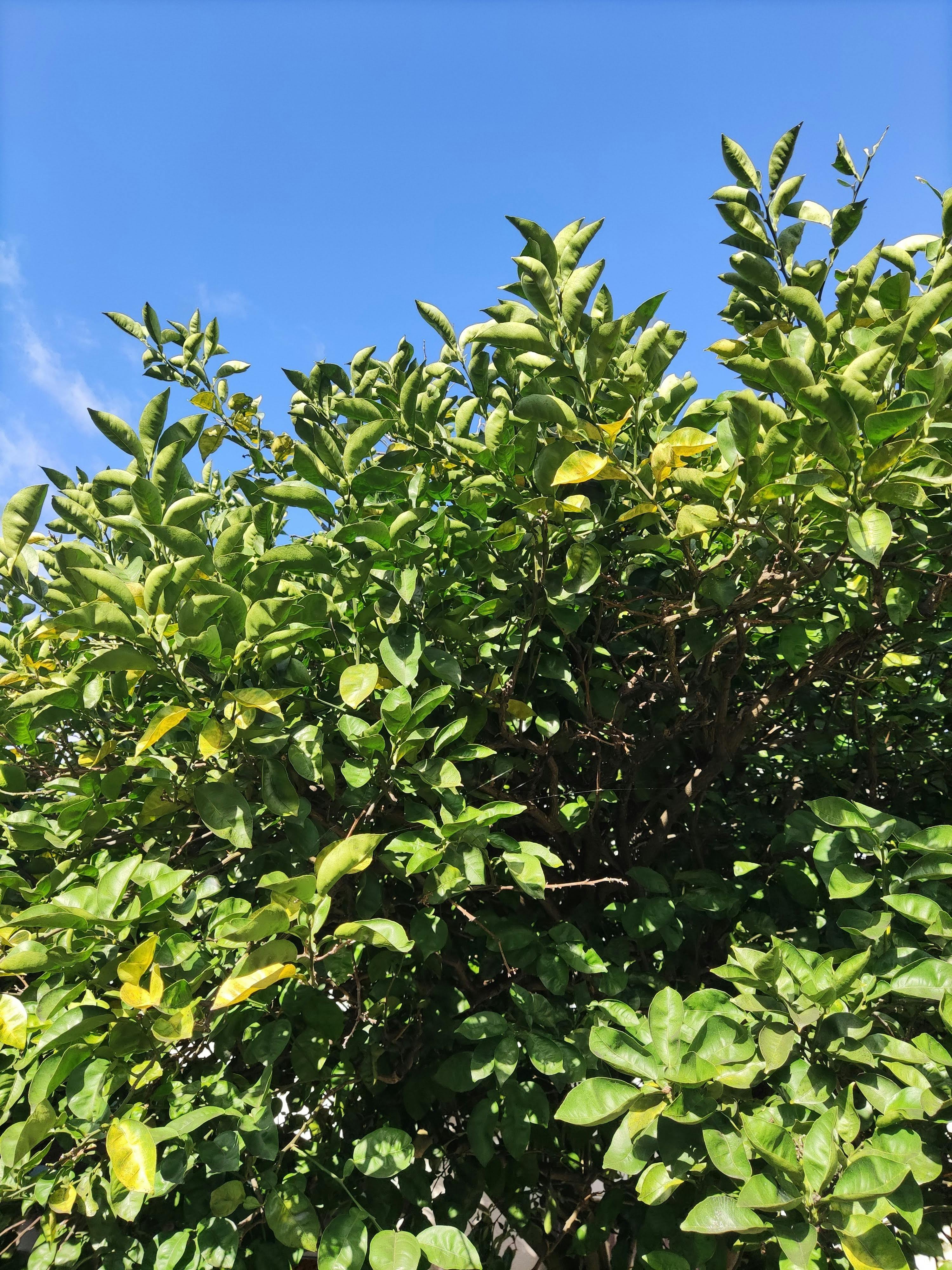 2025年現在、立派な大木に成長したこのカボスの木、もともとは、昔住んでいらっしゃった犬好きのおじいちゃんが、植えた木です。