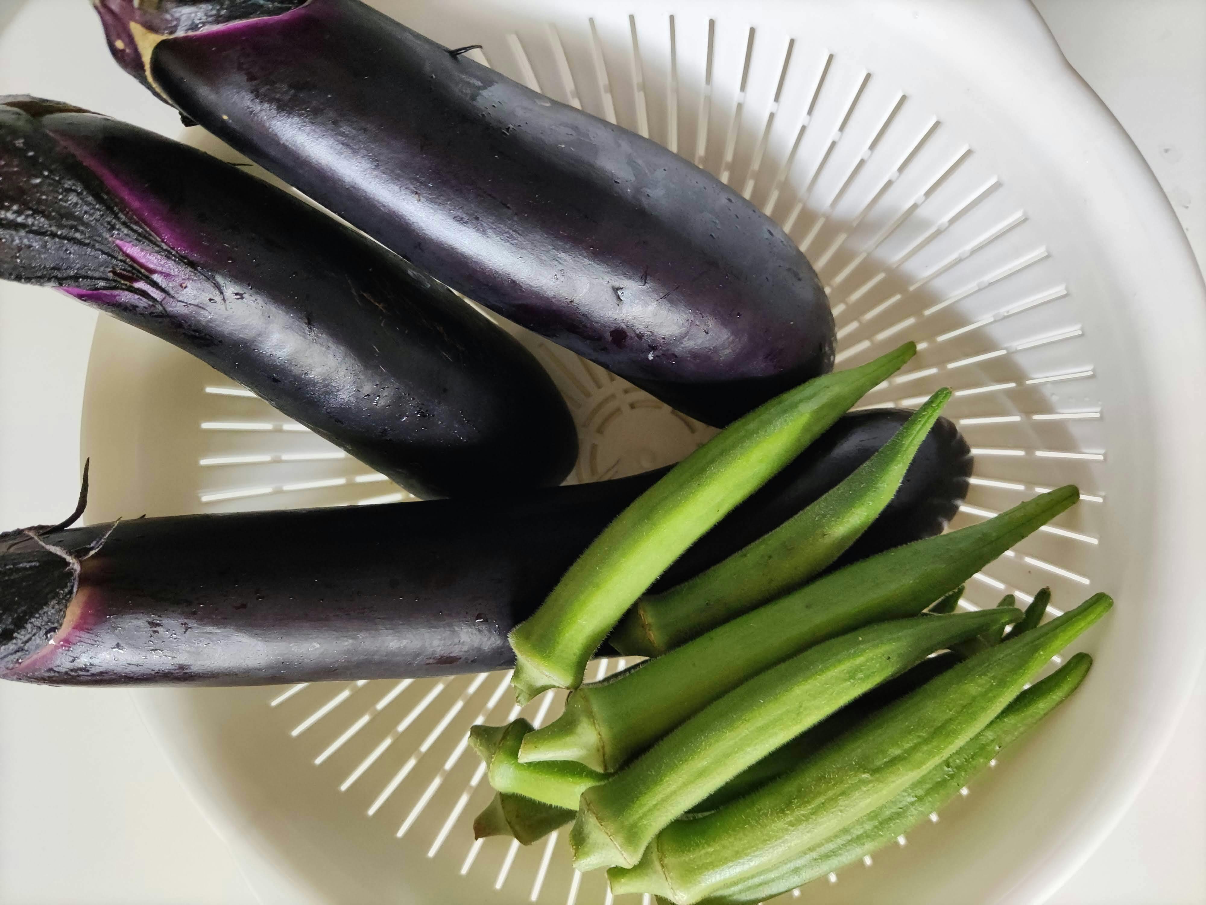 カボスをお届けするとおとうさんとおかあさんから、新鮮なお野菜をいただきました。