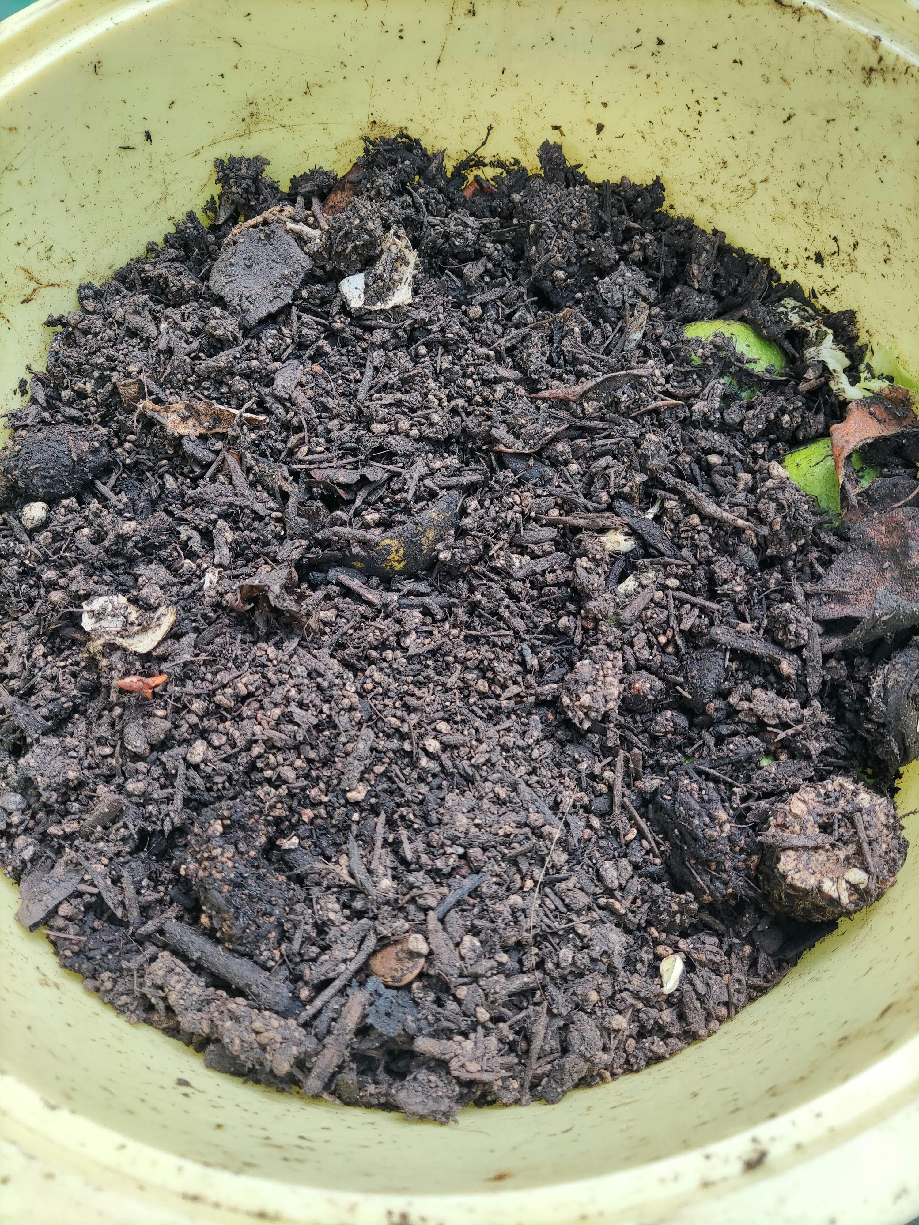使い終わったカボスはこんな感じでコンポストにポイっと。