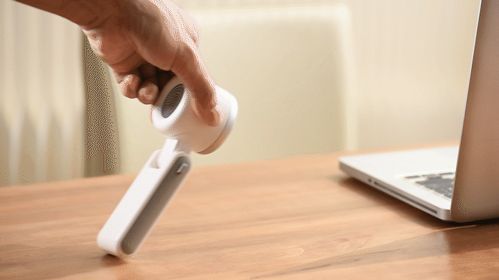 手持ちももちろん、折り曲げて卓上扇風機としても使えます。