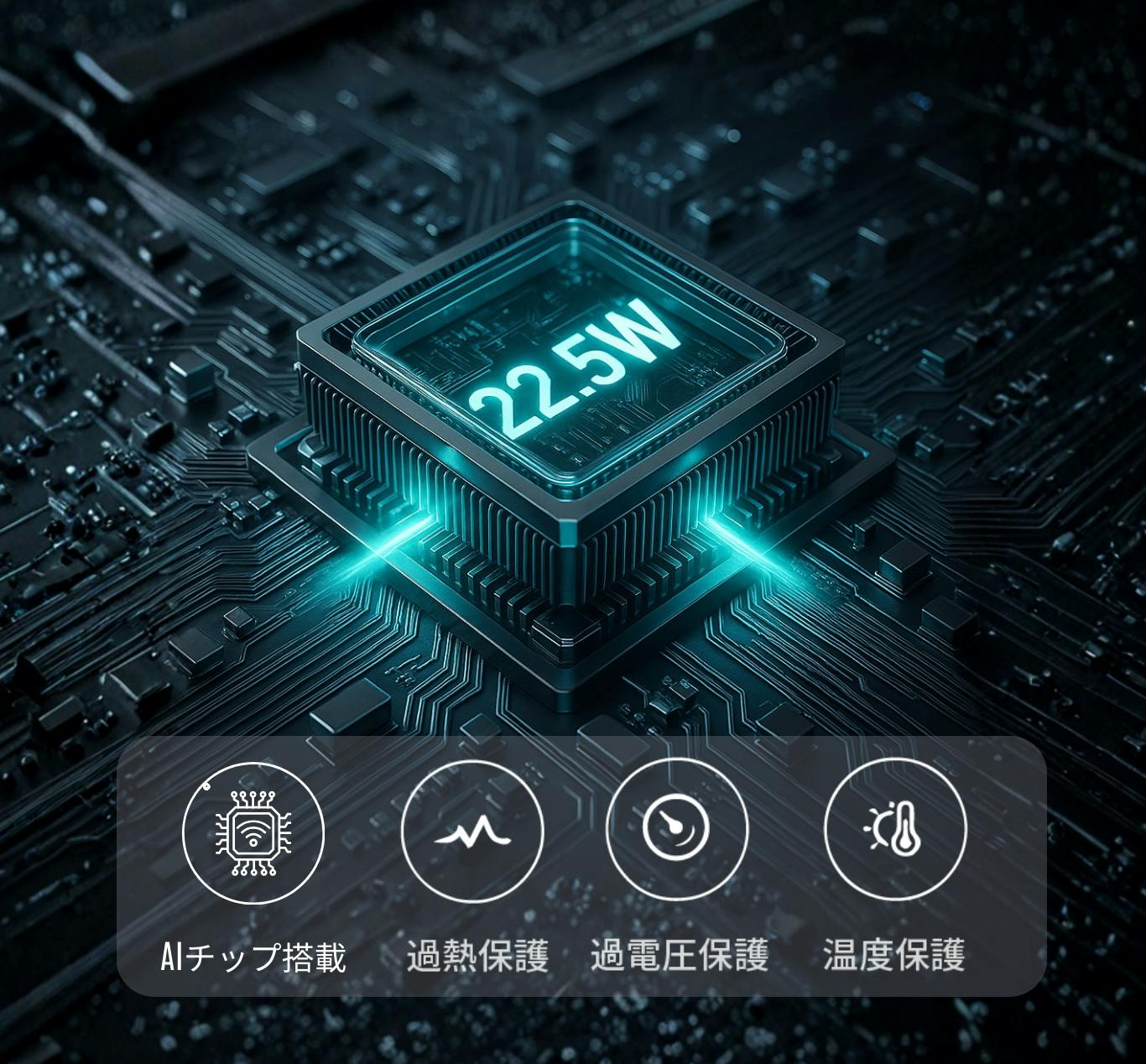 高速充電規格のQi2を搭載し、複数デバイスの同時充電にも、更に高速に対応。