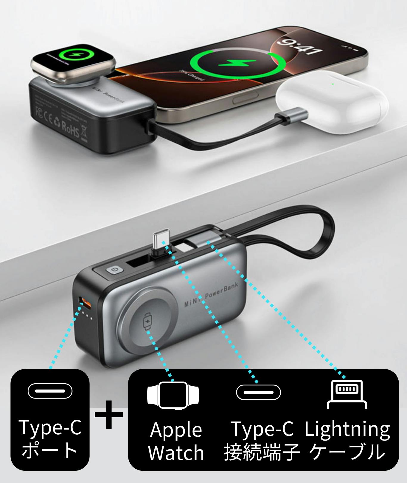 (本製品のマグネット端子の種類はLightning端子、Micro-USB端子、Type-C端子になります。)