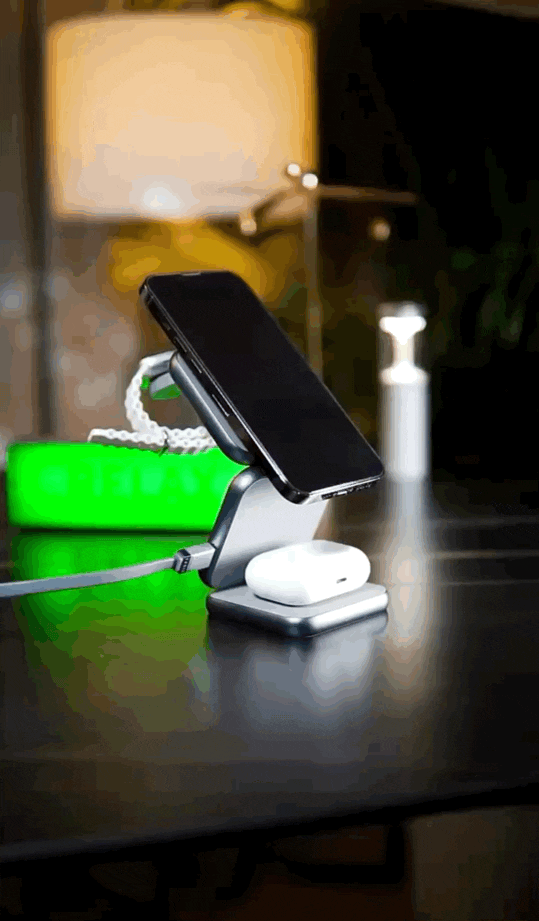 折畳式の充電スタンド「Mag Stand Pro 3」は、3つワイヤレス充電エリアを搭載。