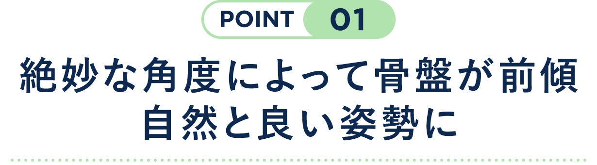 20°の絶妙な傾きが骨盤を前傾させるので、乗ることで良い姿勢が自然と作られる構造。床に座った時でも、クッションの傾斜により骨盤を立たせ、ムリなく良い姿勢を続けられます。