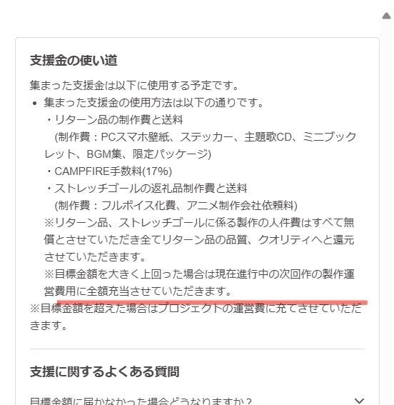 また支援金の使用用途に含まれておりました「次回作の予算」についてですが、
