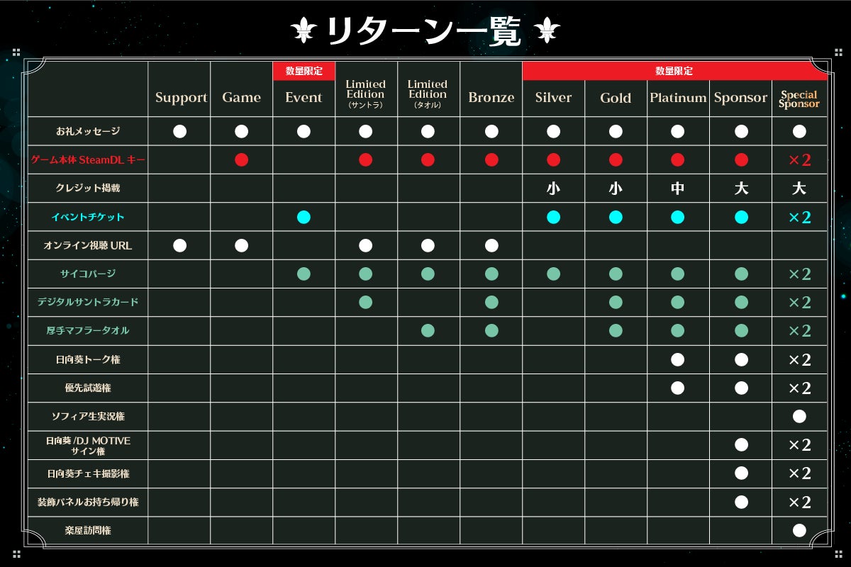 また、シルバープラン以上のご支援をいただいた皆様のお名前は、ゲーム内のクレジットに掲載させていただきます。