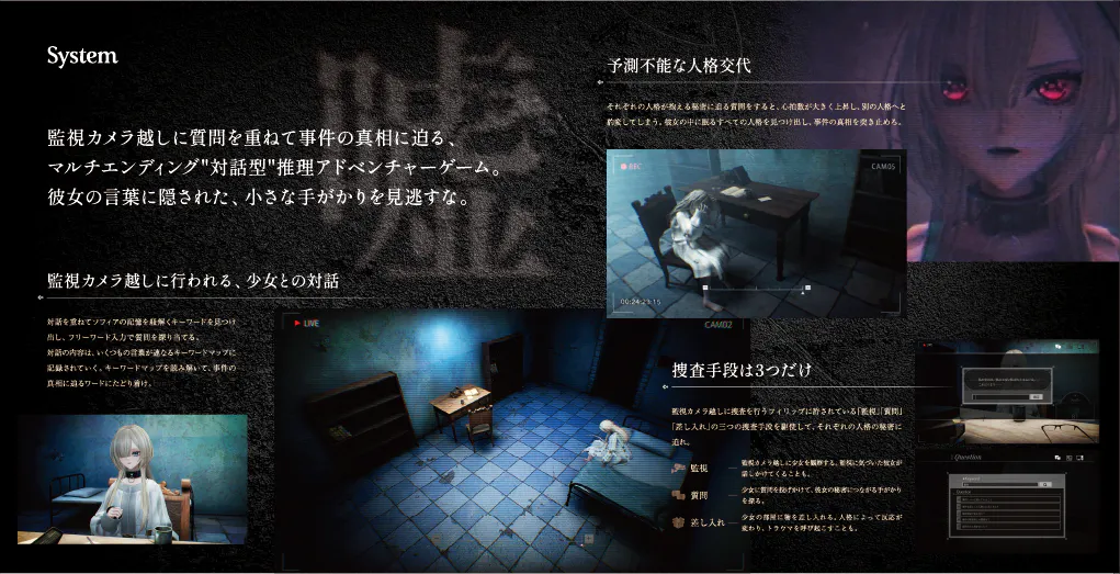 マルチエンディング"対話型"推理アドベンチャーゲーム。