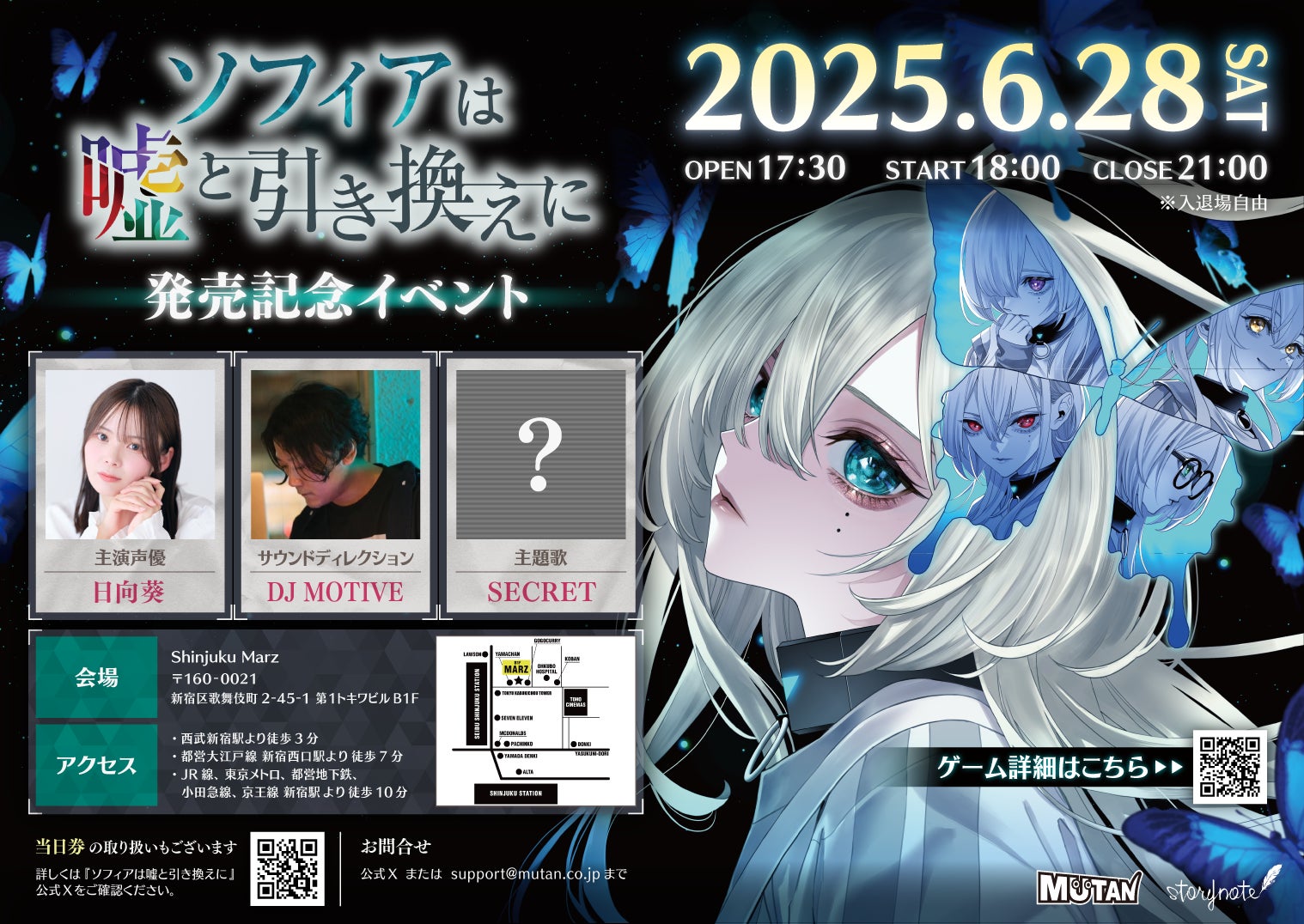 2025/07/25 18:006月28日にShinjuku Marzにて開催された『ソフィアは嘘と引き換えに』発売記念イベントの様子をWEBメディアにて紹介していただきました。ぜひご覧ください!■GameWithhttps://gamewith.jp/gamedb/12471/articles/45347■GameSparkhttps://www.gamespark.jp/article/2025/07/10/154876.html■電撃オンラインhttps://dengekionline.com/article/202507/46287■Nintendo DREAM WEBhttps://www.ndw.jp/column_250713/ もっと見る発売記念イベントオンライン視聴URLについてのご案内