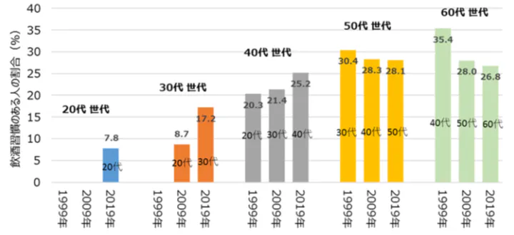 経済産業省の調査によると、若者の間で「お酒離れ」が進んでいます。かつて、40代以上の3割以上が日常的にお酒を楽しんでいたのに比べ、現在の20代では定期的に飲酒する人はわずか7.8%。日本酒業界にとっては厳しい状況です。