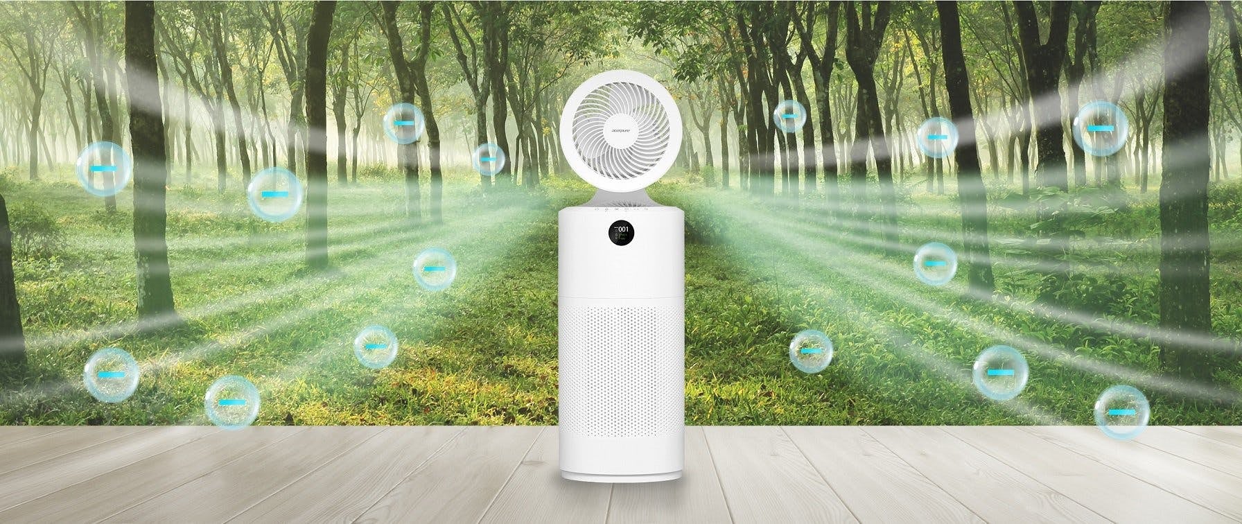 - 円筒型ボディ設計により、室内の空気を360°全方向から効率的に吸引。4層構造のHEPAフィルターが、花粉・PM2.5・ホコリ・細菌などを確実にキャッチ。さらに、UVC LED照射とマイナスイオン放出機能を組み合わせることで、ウイルスや有害物質を清浄。