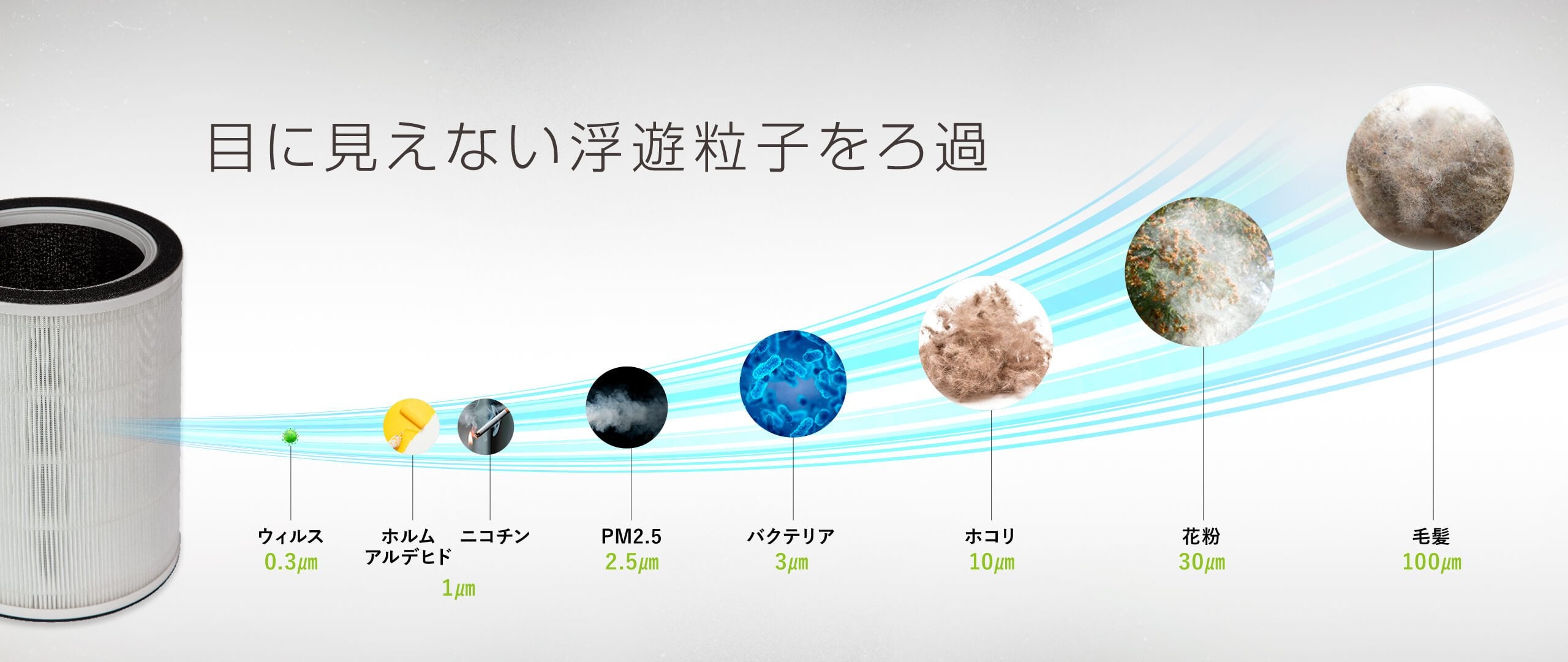3 in 1+ HEPAフィルター、ホルムアルデヒドを99%除去