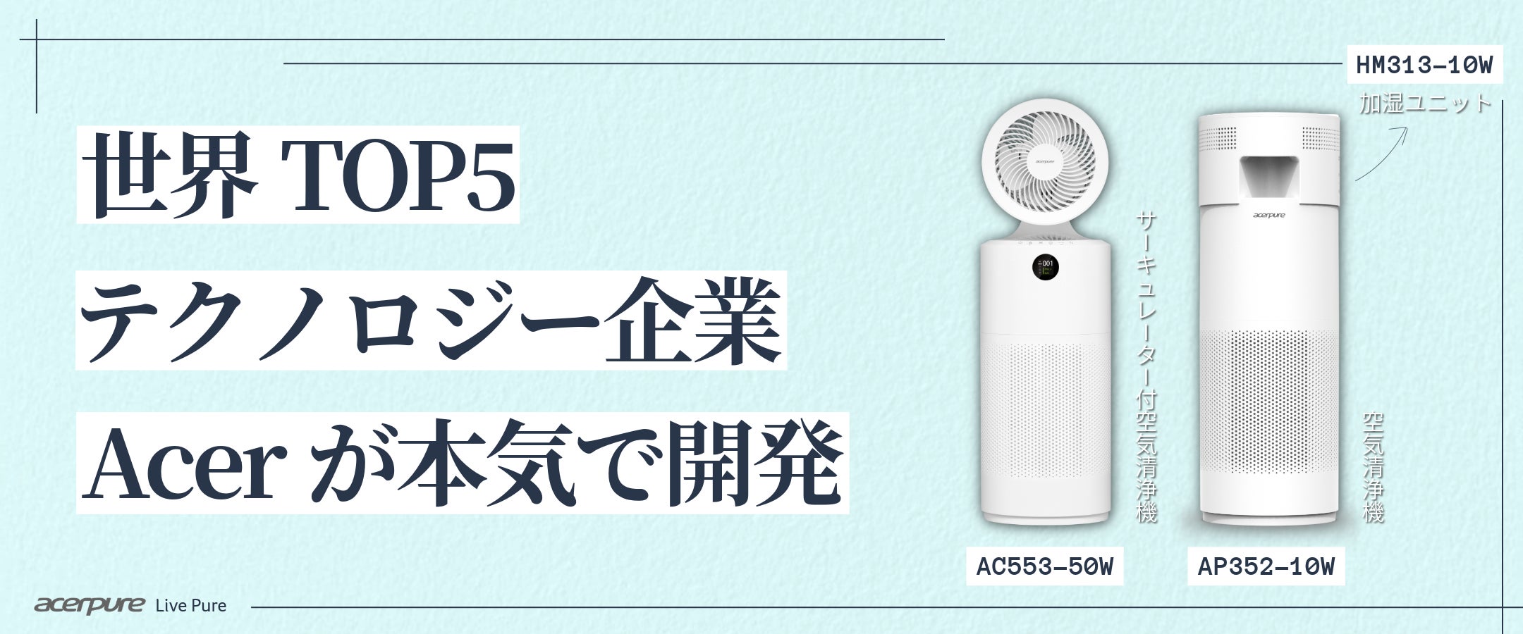 Acerpure(エイサーピュア)は、世界TOP5のIoTメーカーであるAcerが展開する新しいブランドです。Acerが45年にわたり培った技術と経験を活かし、日常生活をより快適にする革新的な製品を提供しています。1976年の創業以来、Acer はハードウェア+ソフトウェア+サービスカンパニーとして、人々の生活を豊かにする革新的な製品の研究、デザイン、マーケティング、販売およびサポートを行っています。