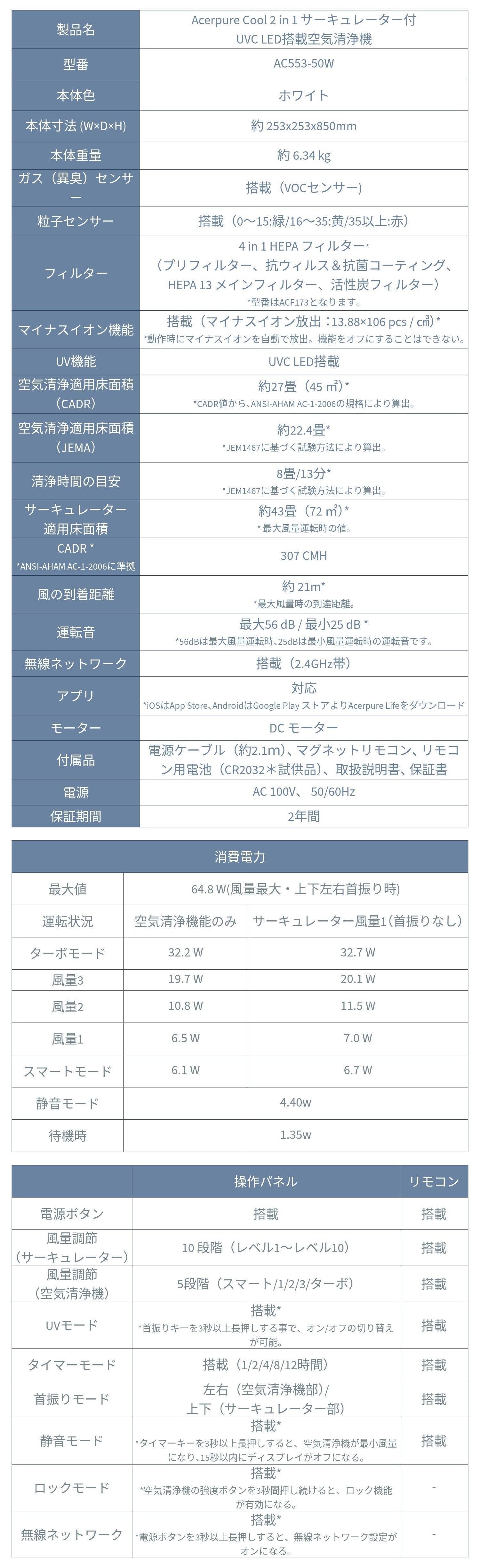 *AC553-50Wは、AC551-50Wに抗菌UVC LEDを追加した進化モデルです。