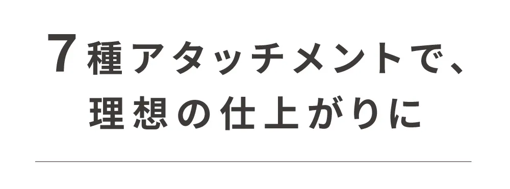 髪のスタイルに合わせて使い分けられる7種類のアタッチメントを付属。ストレートもカールも思いのまま、自宅でサロン品質の仕上がりを楽しめます。