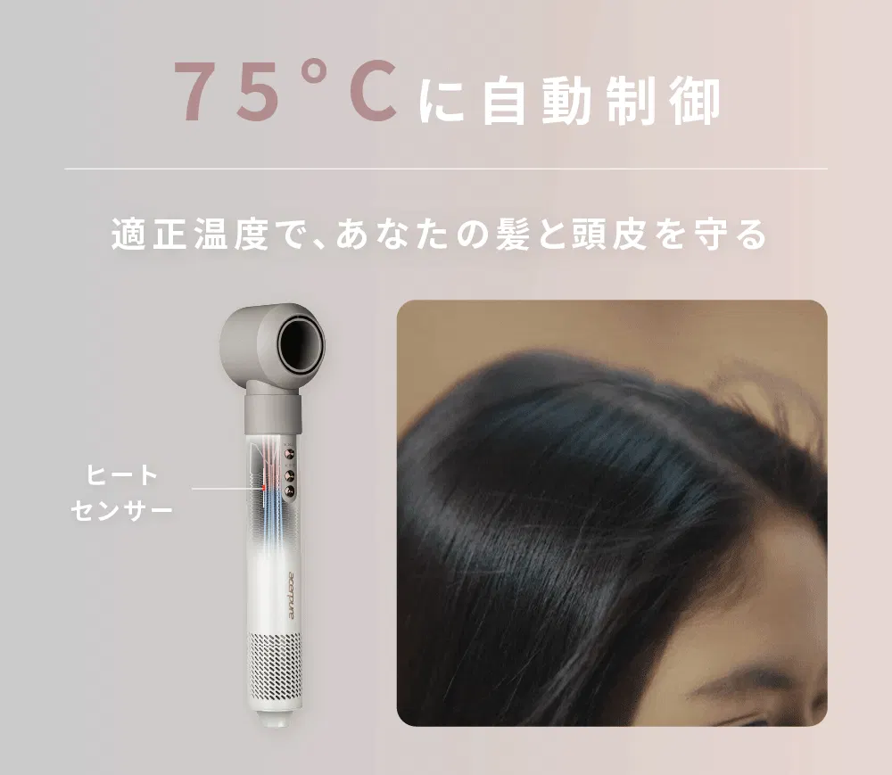髪の表面温度を自動で感知し、最適な温度をキープする機能。高温風の当てすぎによるパサつきやダメージを防ぎ、髪を守ります。
