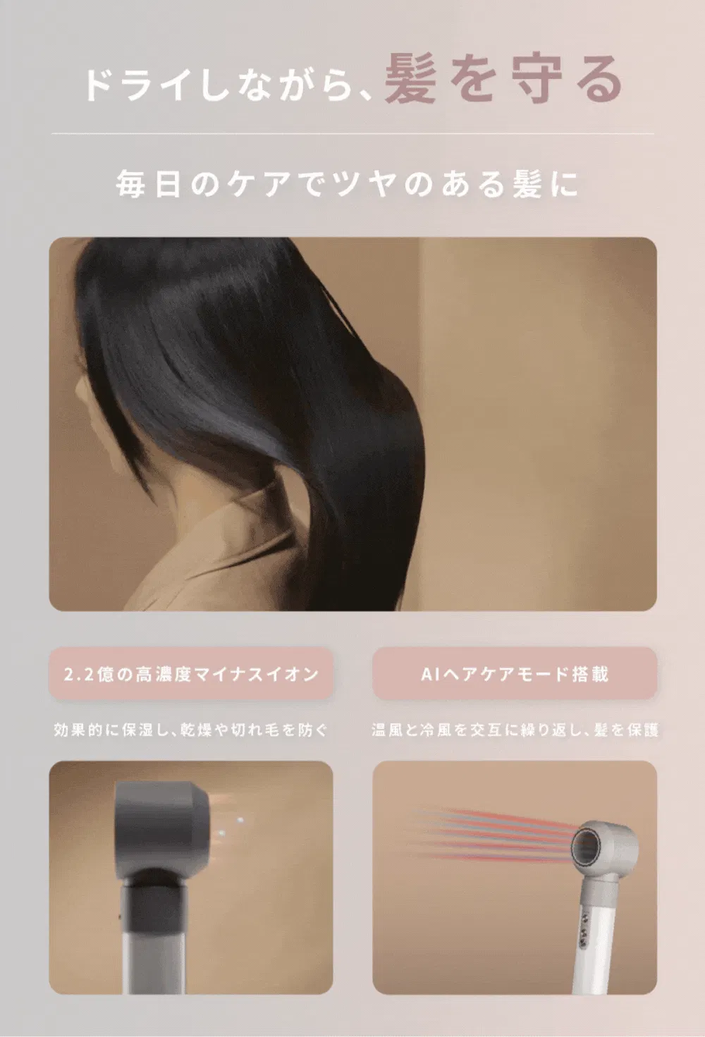 AIヘアケアモードX2.2億高濃度マイナスイオン