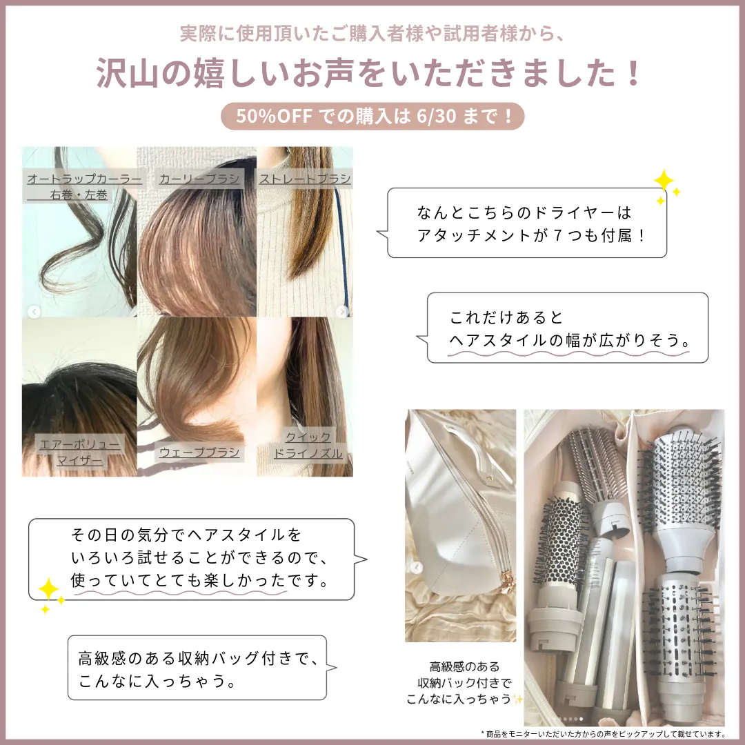 ✅ 7種のアタッチメントで自由自在なヘアセット